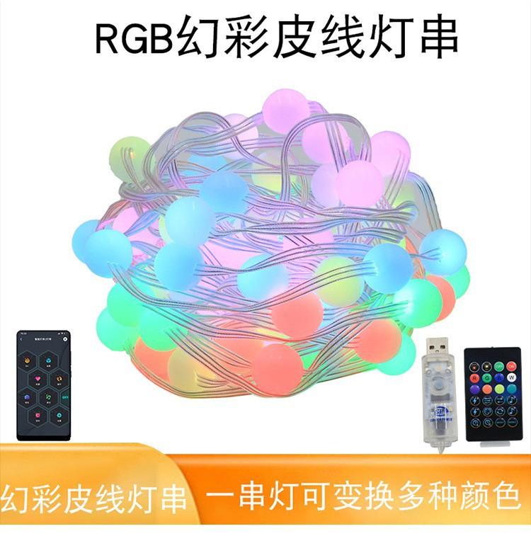Bola de colores mágicos, luz de alambre de cuero, control de punto inteligente, cadena de luces para acampar al aire libre, luz impermeable, luz decorativa RGB, cadena de luces LED