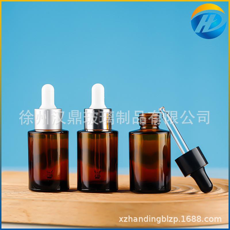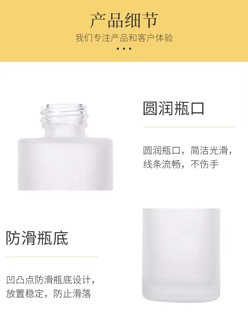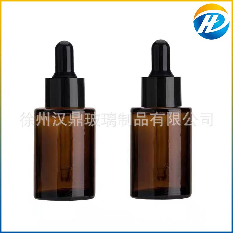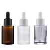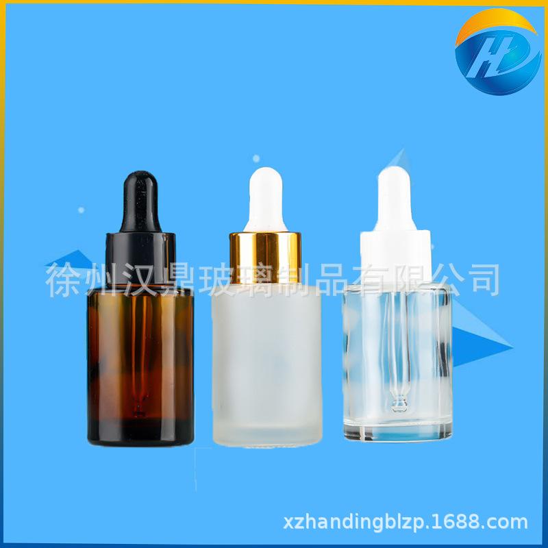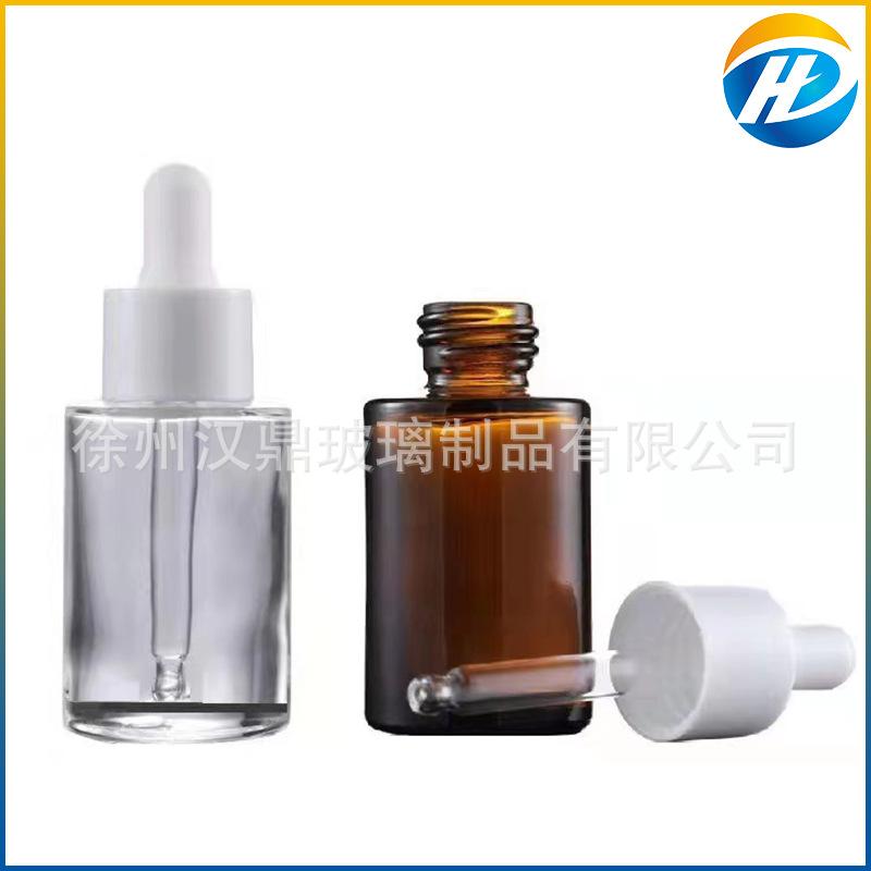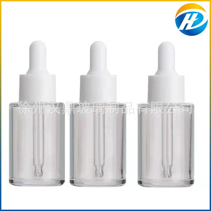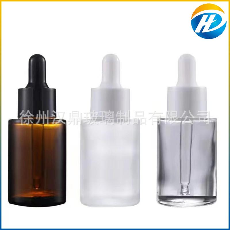 Venta al por mayor, botella de esencia de té de vidrio esmerilado transparente de 30 ml, botella con gotero, botella de esencia, botella cosmética de hombro plano