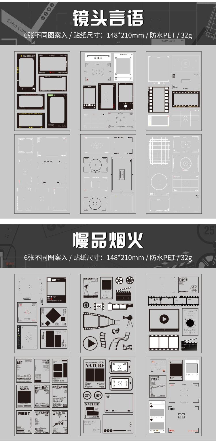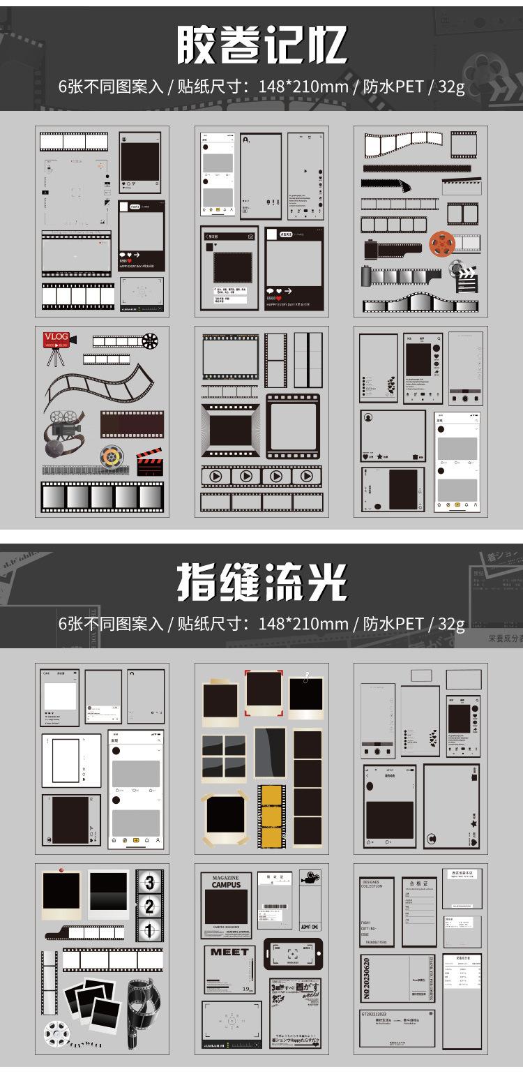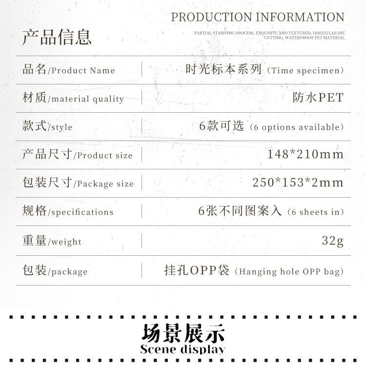 Paquete de Stickers Time Specimen Handbook Película Pet Cut Stickers para Niños DIY Handbook Guka Material Impermeable y Transparente