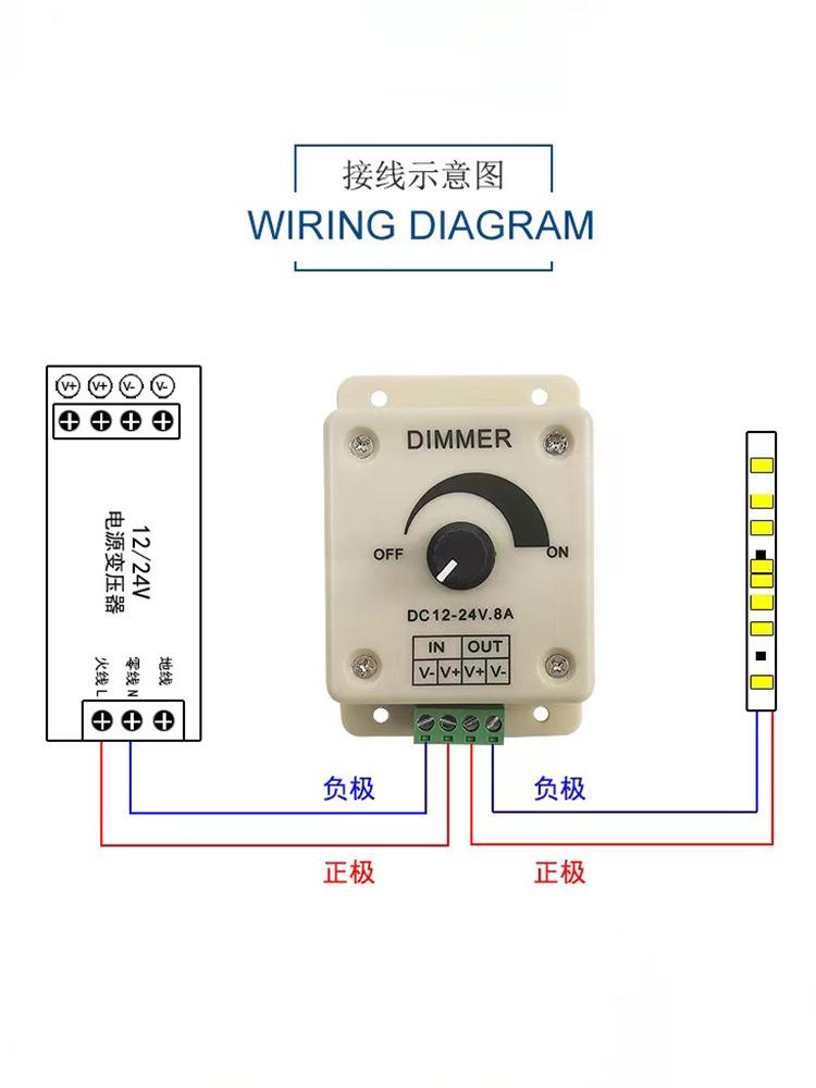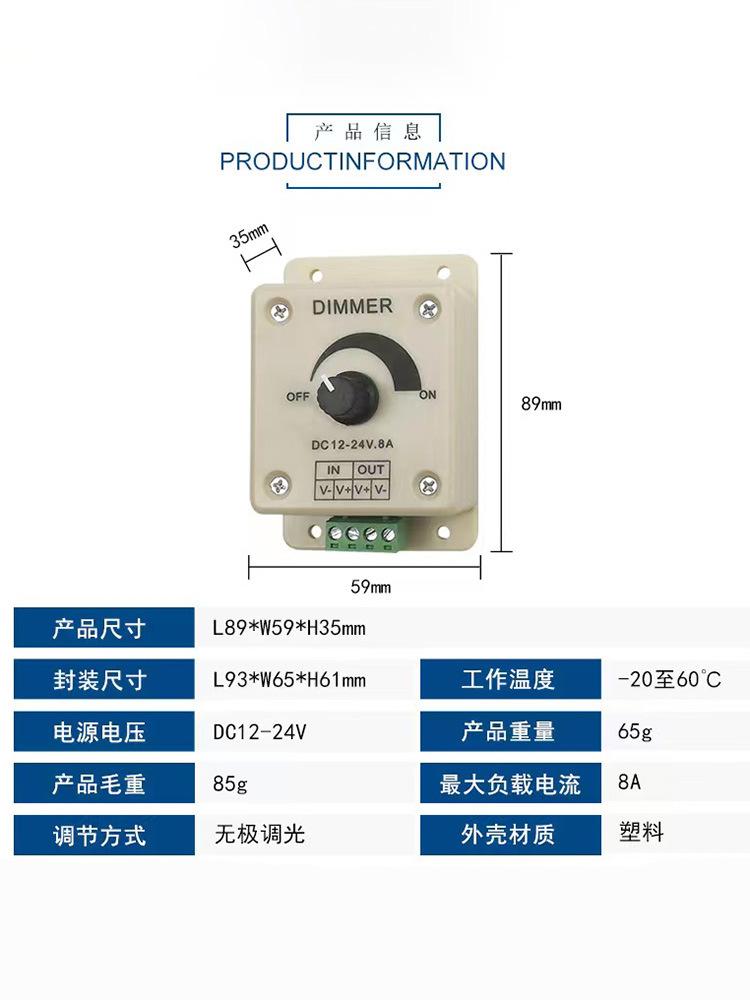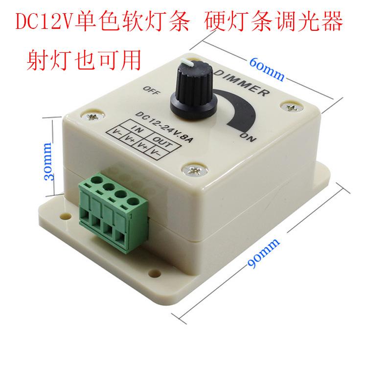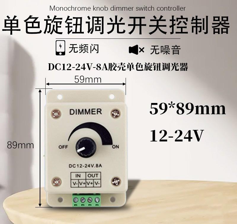 Regulador de intensidad LED manual de 12 V y 24 V, atenuación PWM, luz monocromática con controlador de brillo de caja de luz, canal único de 8 A