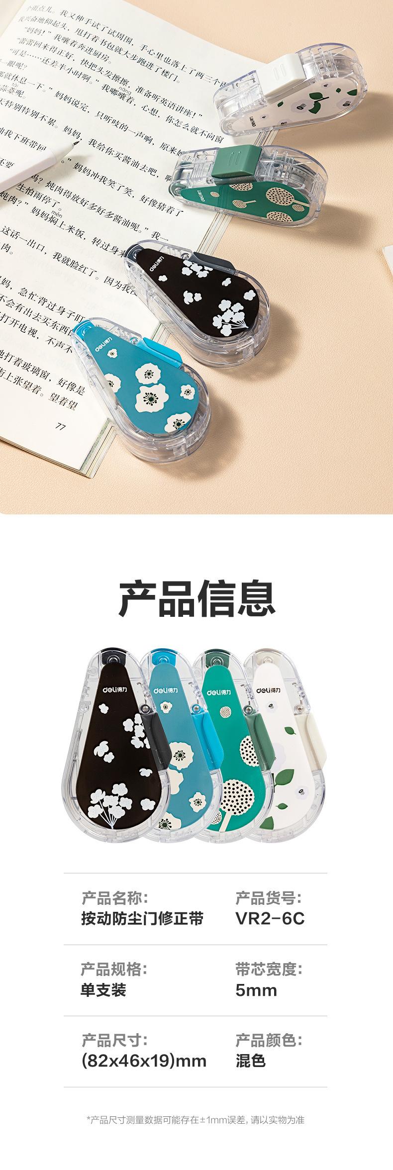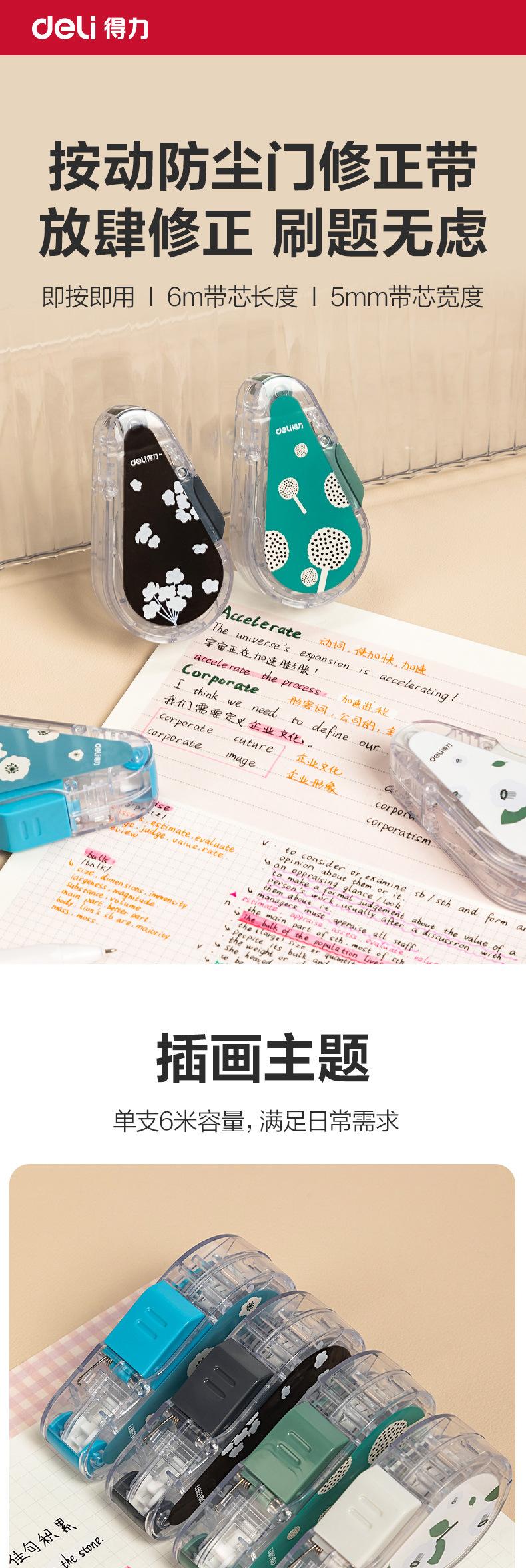 Deli VR2-6C Tema Ilustración Presionar Polvo Puerta Cinta Correctora Estudiantil Cinta Correctora Cinta Correctora