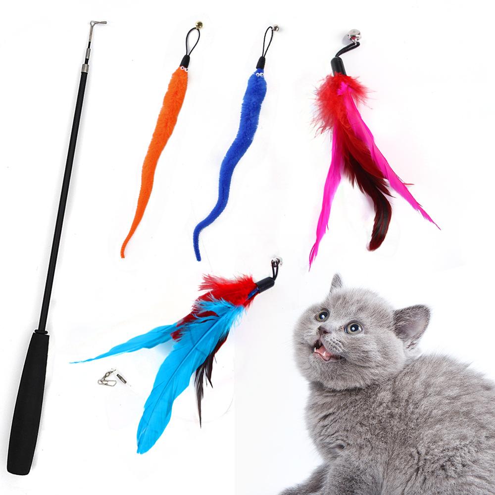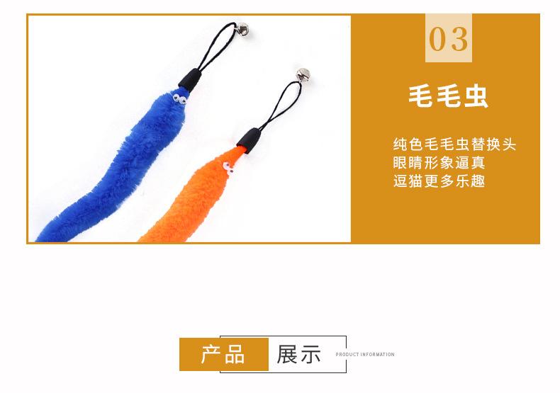 Nuevos productos creativos transfronterizos, juguete para gatos, traje de plumas, cabeza de repuesto, juguete para gatos con sonido de oruga y campana.