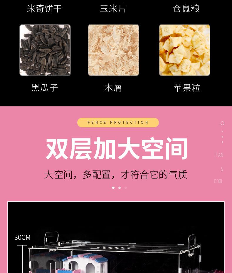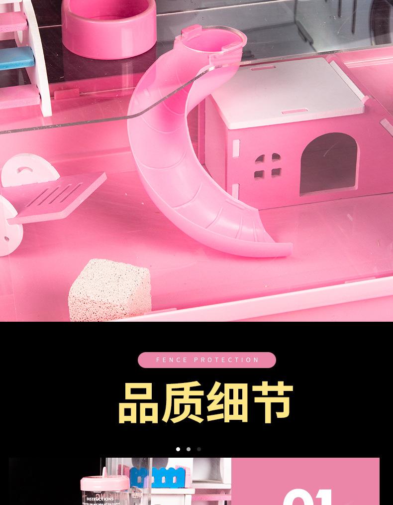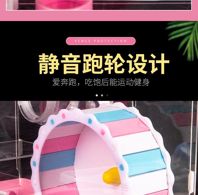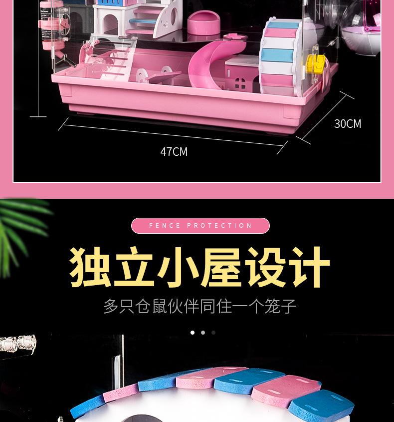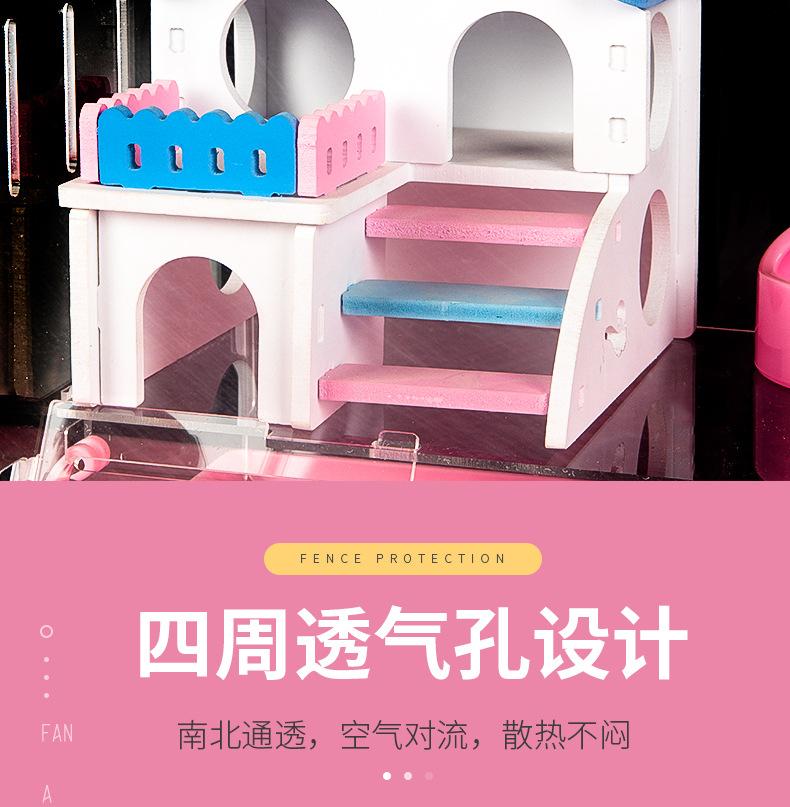 Jaula para hámster de dos pisos Villa City 47 con base de tobogán acrílico, nido para hámster, oso dorado, grande, Villa
