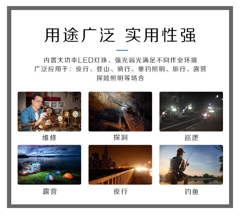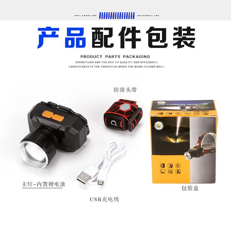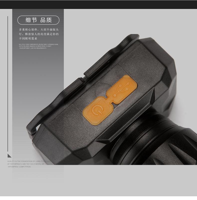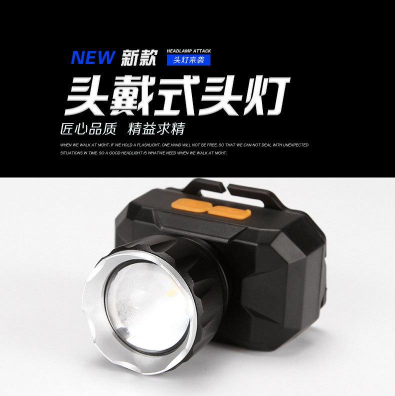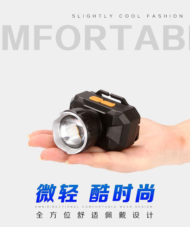 Esta es una linterna frontal de alta gama. Su cabezal está hecho de aleación de aluminio y su mecha es grande.CONDUJOPerlas de lámpara, función de zoom súper brillante