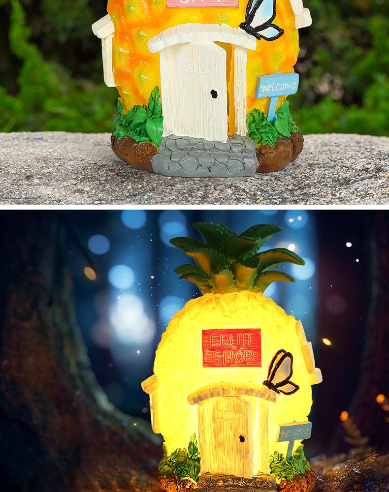 Casa Piña Lámpara Solar de Fruta Impermeable Artesanías de Resina Paisaje Jardín Exterior Villa Lámpara Decorativa de Jardín