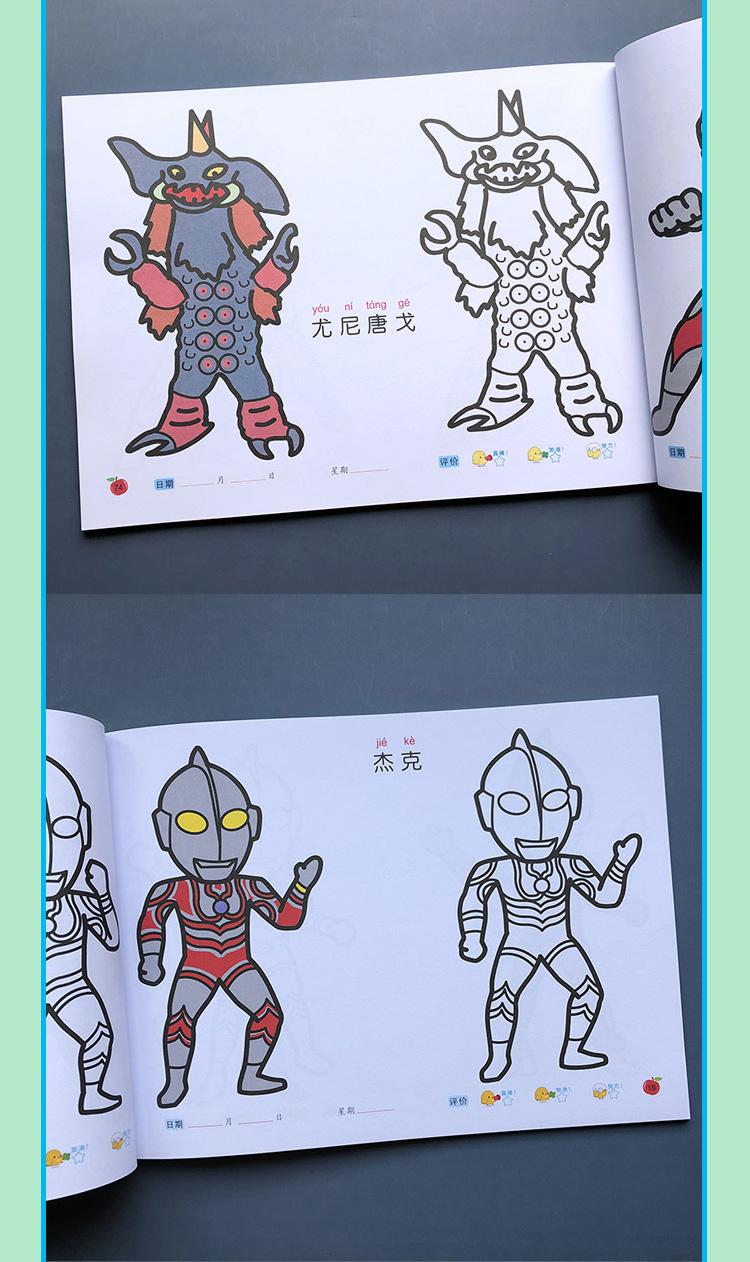 Libro para colorear y pintar para entrenamiento de la concentración infantil, Colección de dibujo simple de Ultraman, Libro para colorear y grafiti para niños, Venta al por mayor