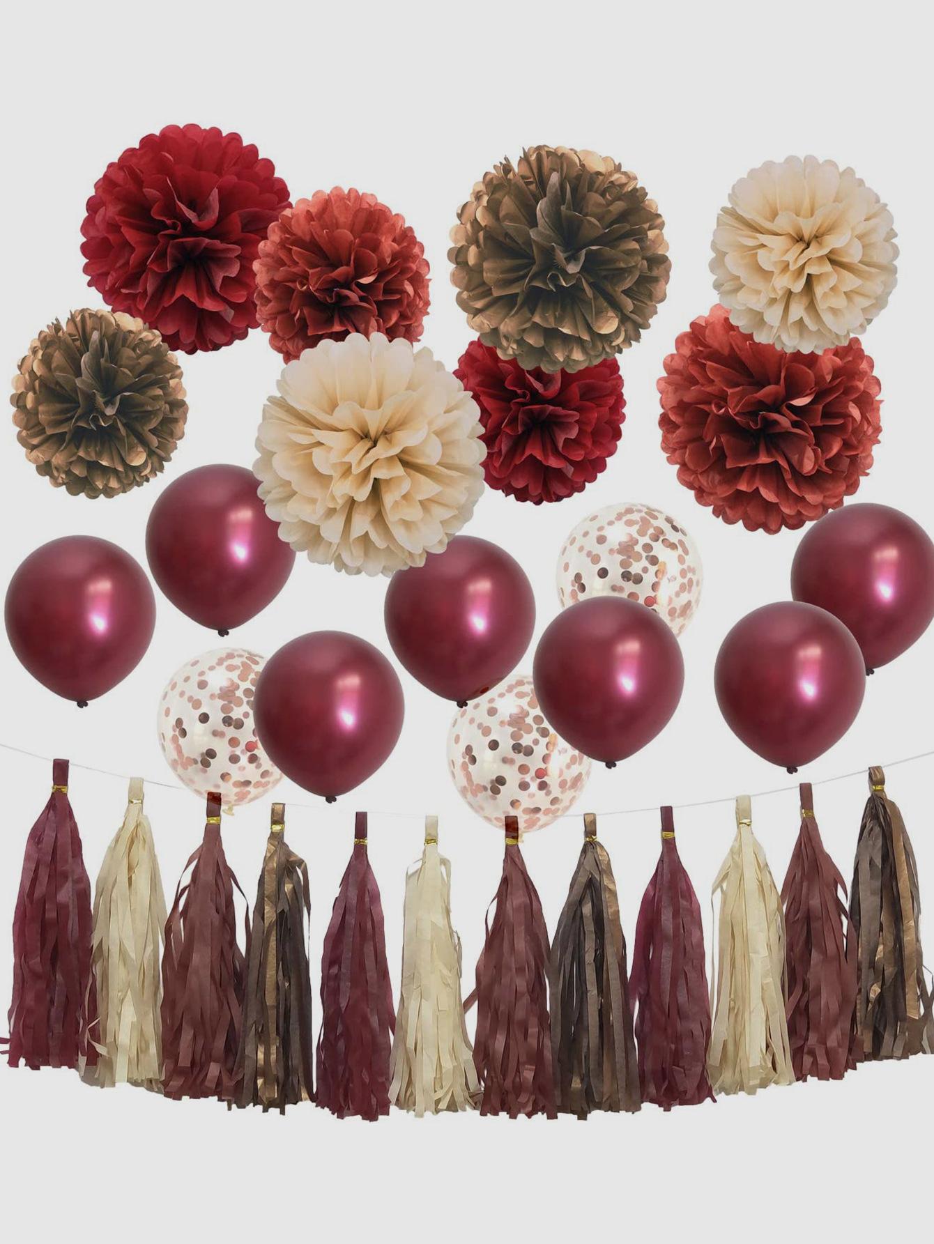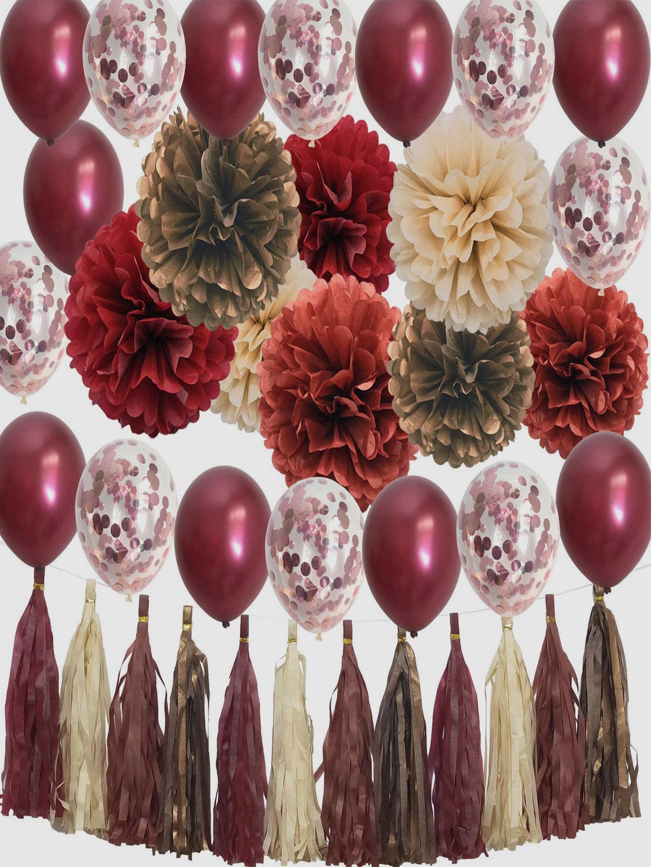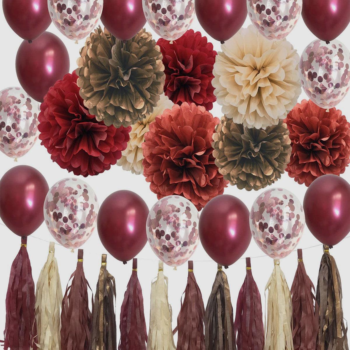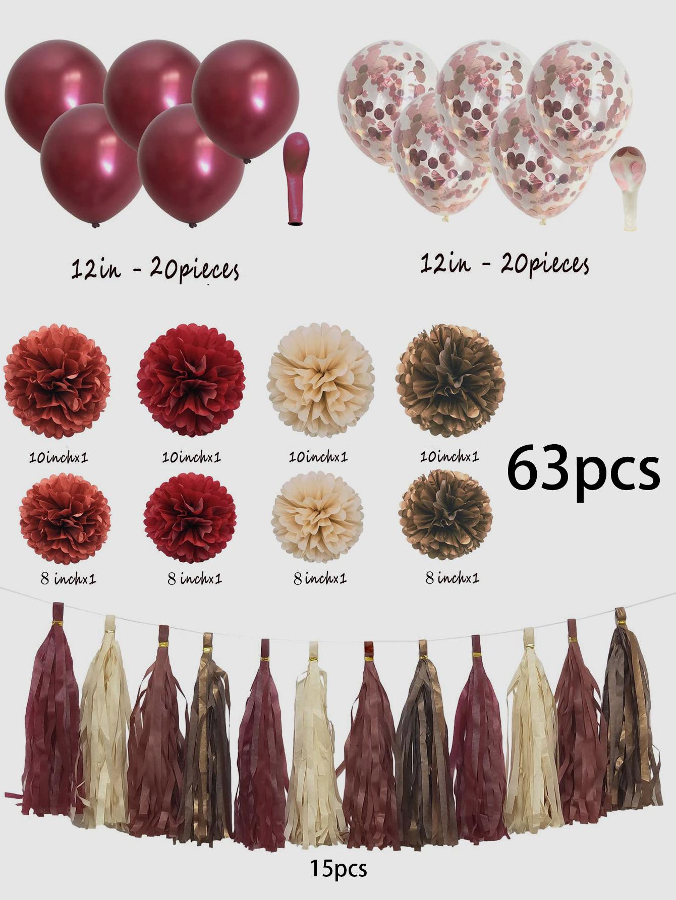 Globo con borlas de panal de Amazon Cross Border, 63 unidades, color vino tinto, para decoración de fiestas de cumpleaños y bodas
