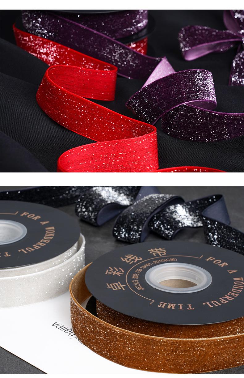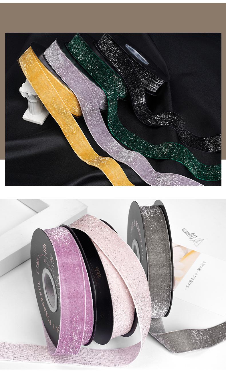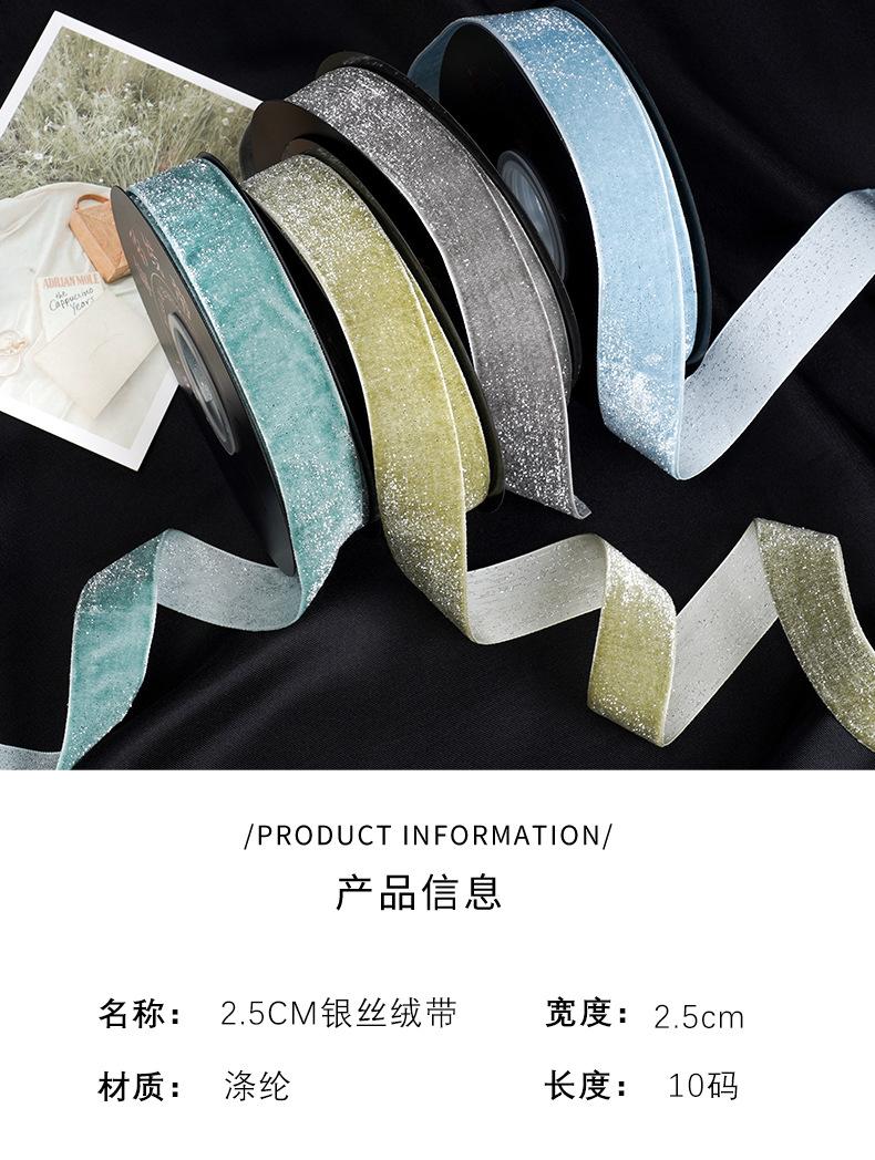 Caja de regalo, cinta, accesorios para el cabello, lazo, cinta, paquete de flores, embalaje, cinta de terciopelo plateada de 2,5 cm con una sola cara.
