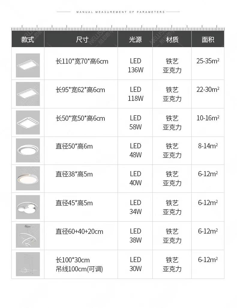 LED bright white light, LED three-color dimming, LED stepless dimming + remote control, Tmall Genie-smart voice-APP