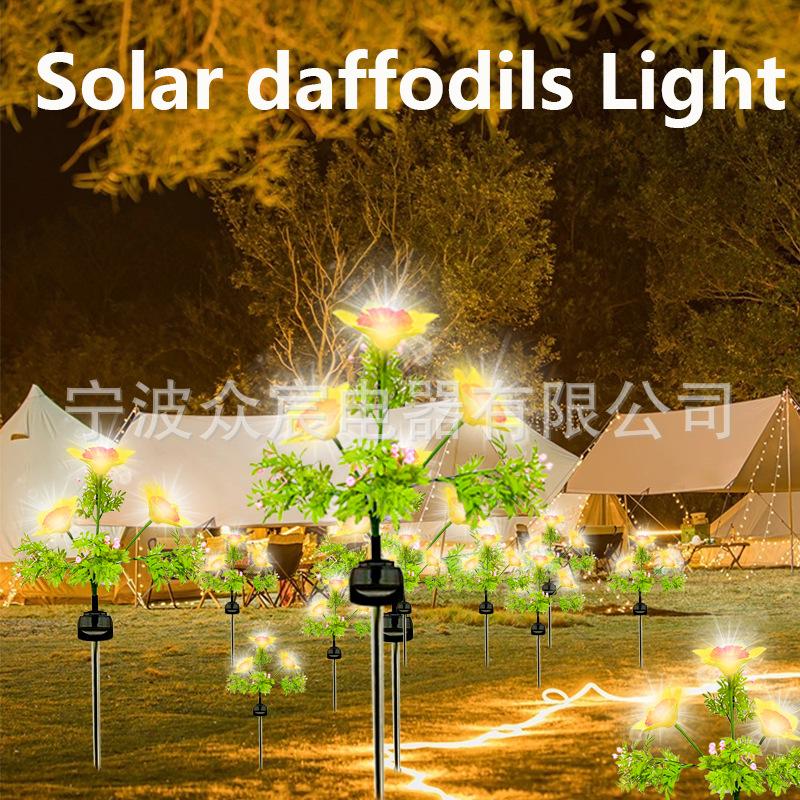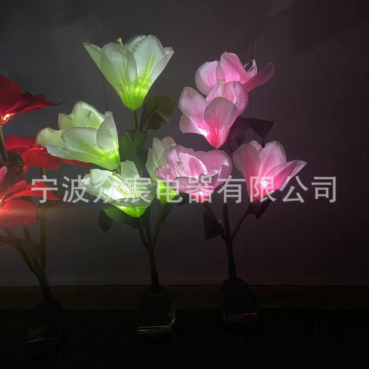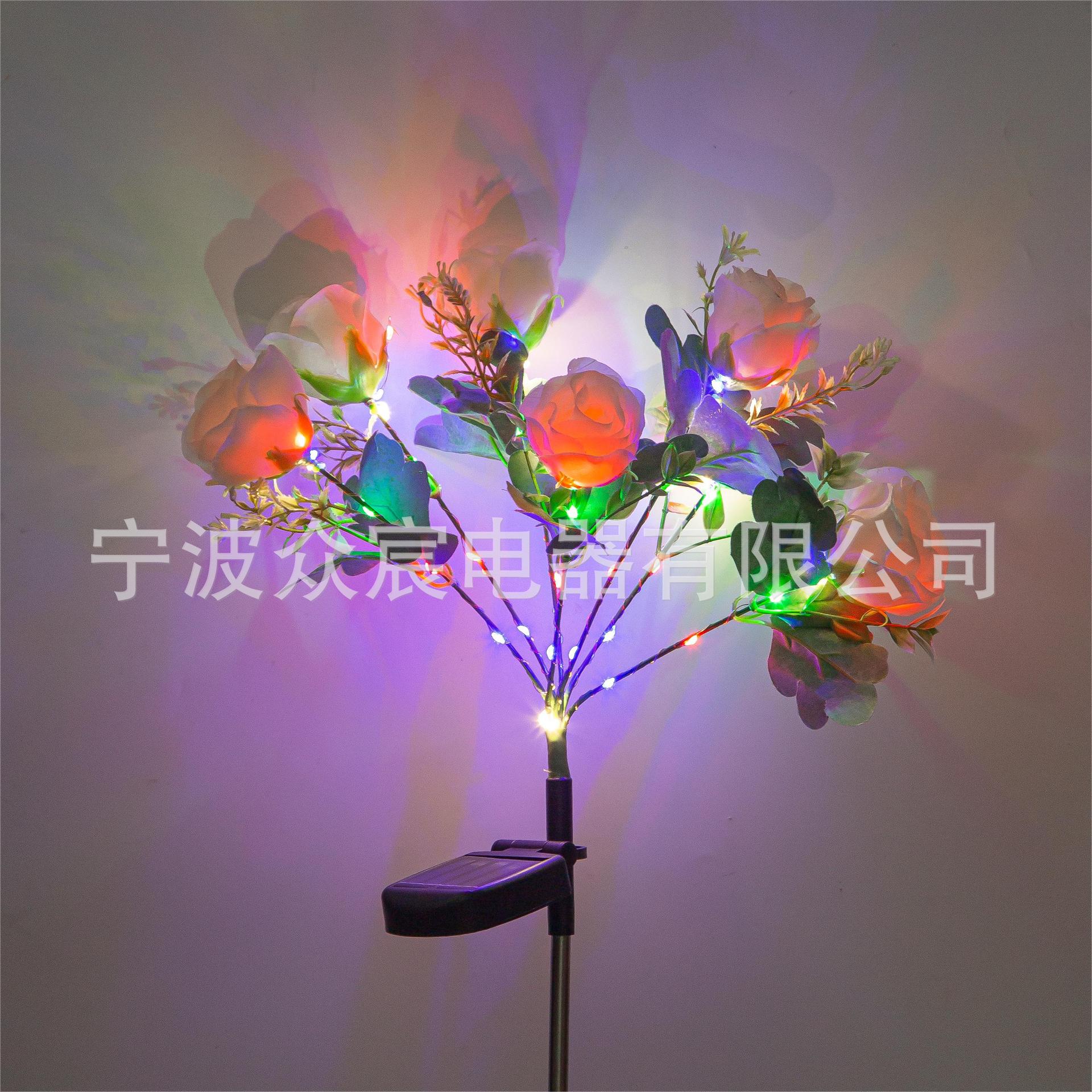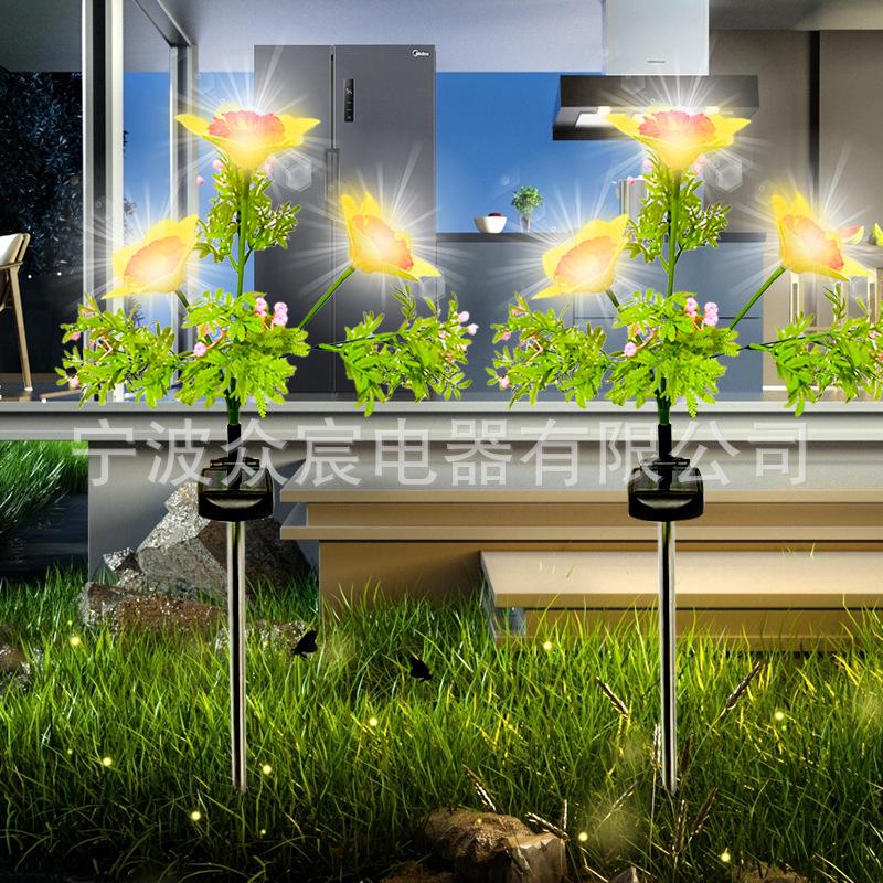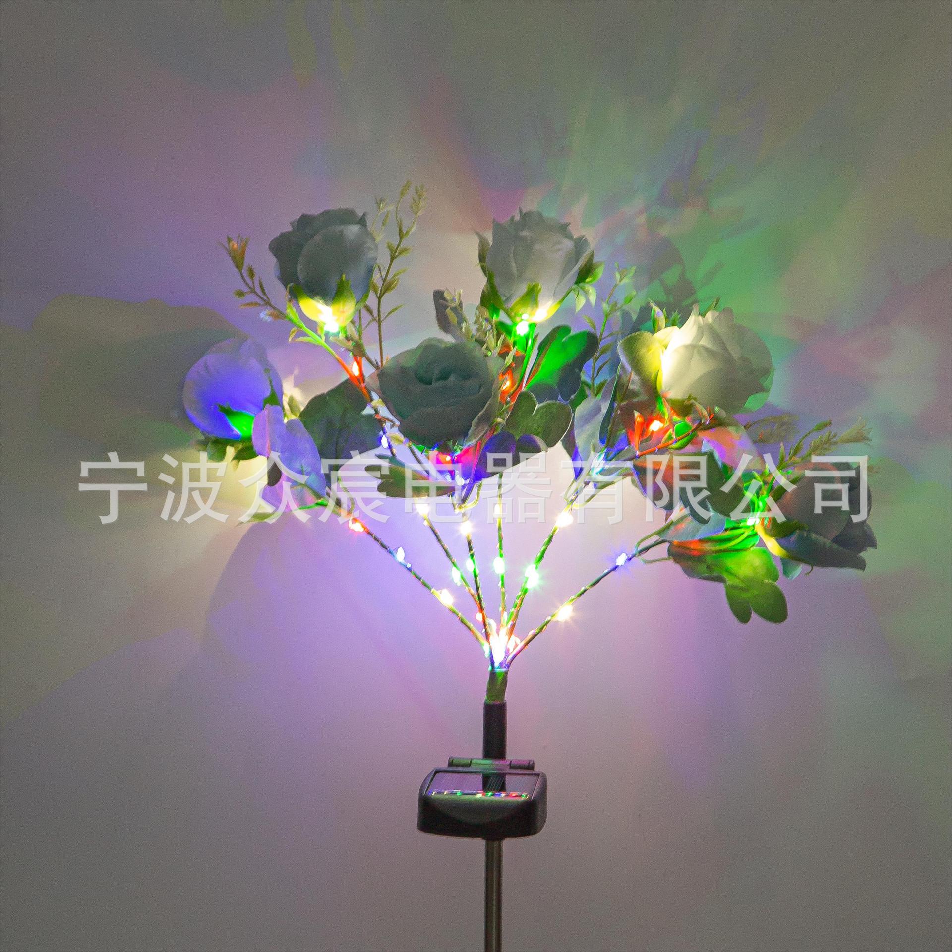 Nueva Lámpara Solar de Flor Artificial para Exterior Led Jardín Césped Lámpara de Suelo Lámpara Solar de Rosa de 5 Cabezas