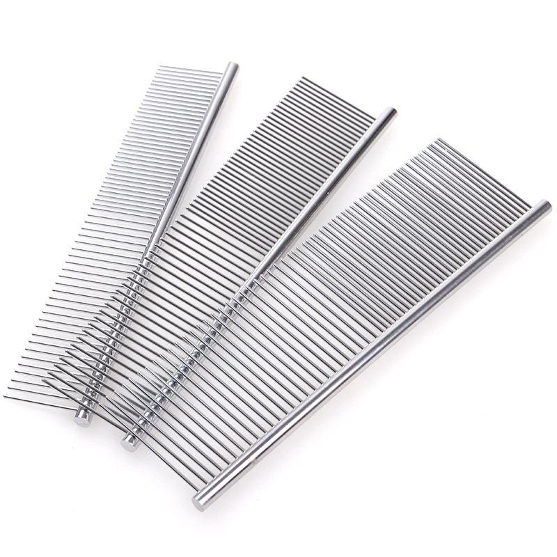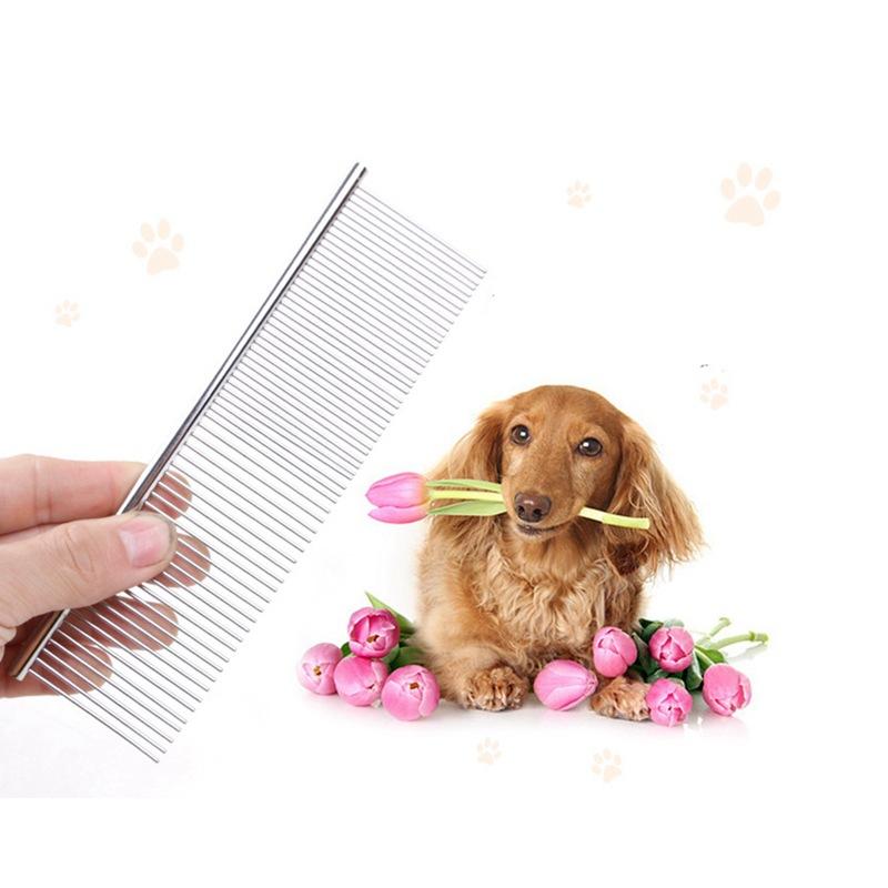 Nombre del producto: Herramientas de limpieza y aseo para mascotas, peine para mascotas, peine para desenredar para perros, peine de acero, peine recto de acero inoxidable, peine de púas