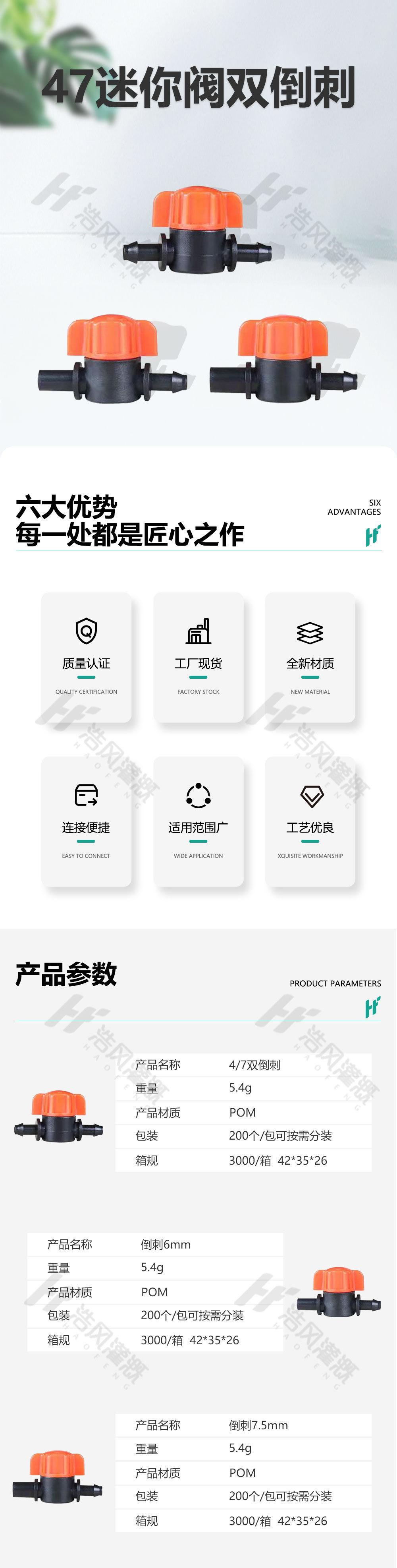 Válvula de interruptor de riego por goteo 47, mini válvula 47, válvula capilar de doble púa, válvula de paso recto, conector para dispositivo de riego automático de jardín, accesorios