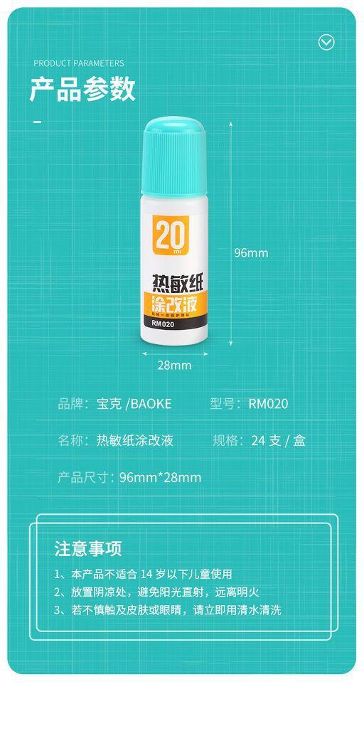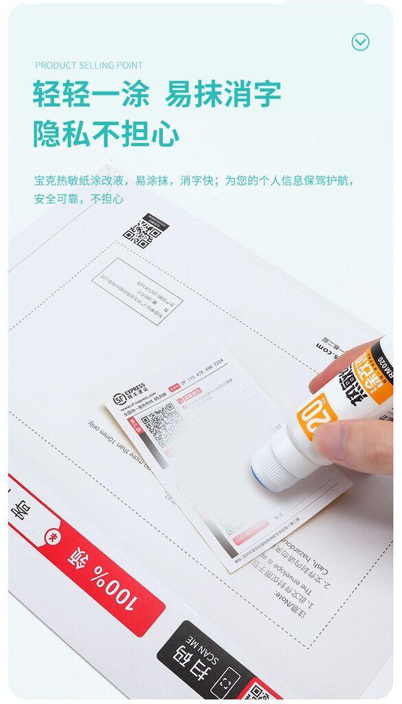 Líquido corrector de papel térmico Baoke Express artefacto para eliminar información de escritura única privacidad cubierta antifugas artefacto corrector