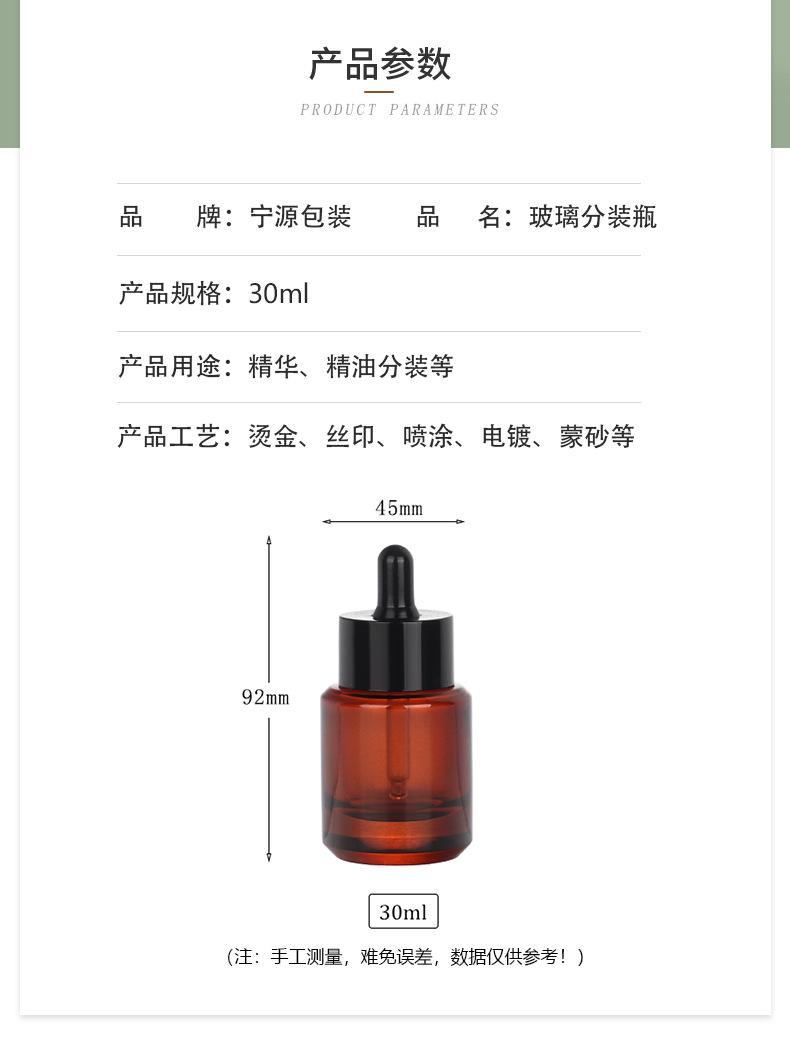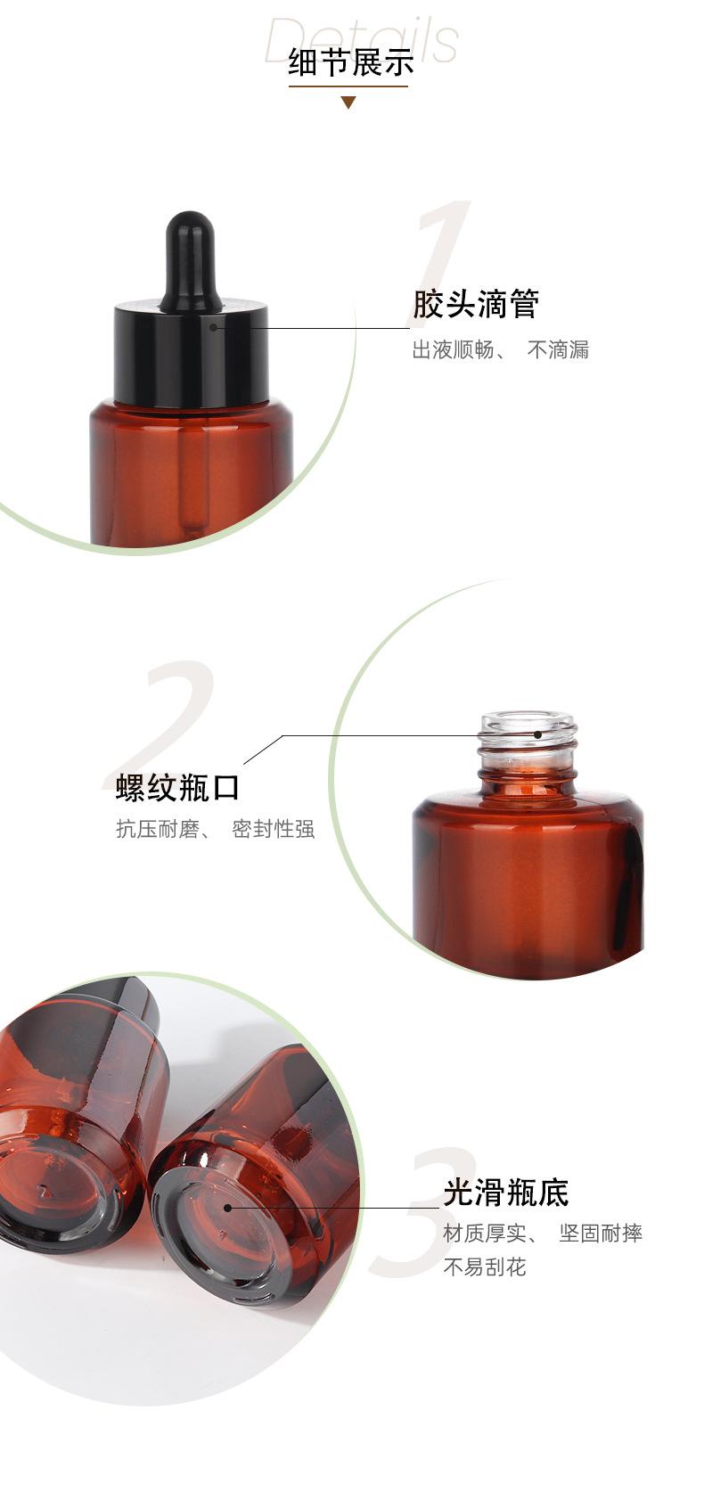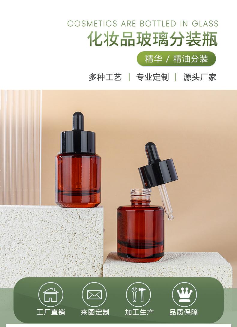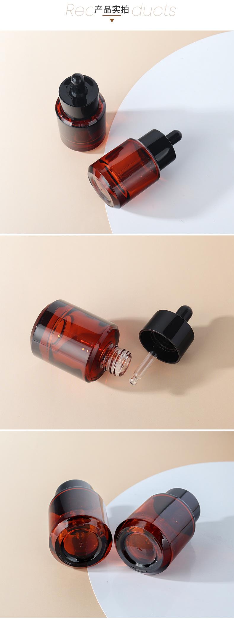 Botella de aceite esencial de 30 ml, botella de líquido, botella con gotero transparente de fondo oblicuo, cabezal de plástico, subbotella, material de embalaje cosmético
