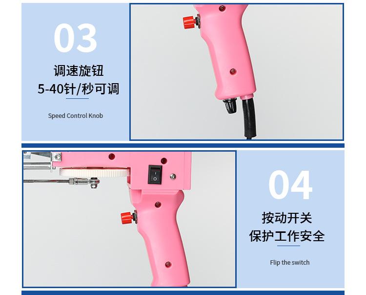 Pistola para tejer alfombras TD-03, dos en uno, rosa, con aguja eléctrica, para alfombras