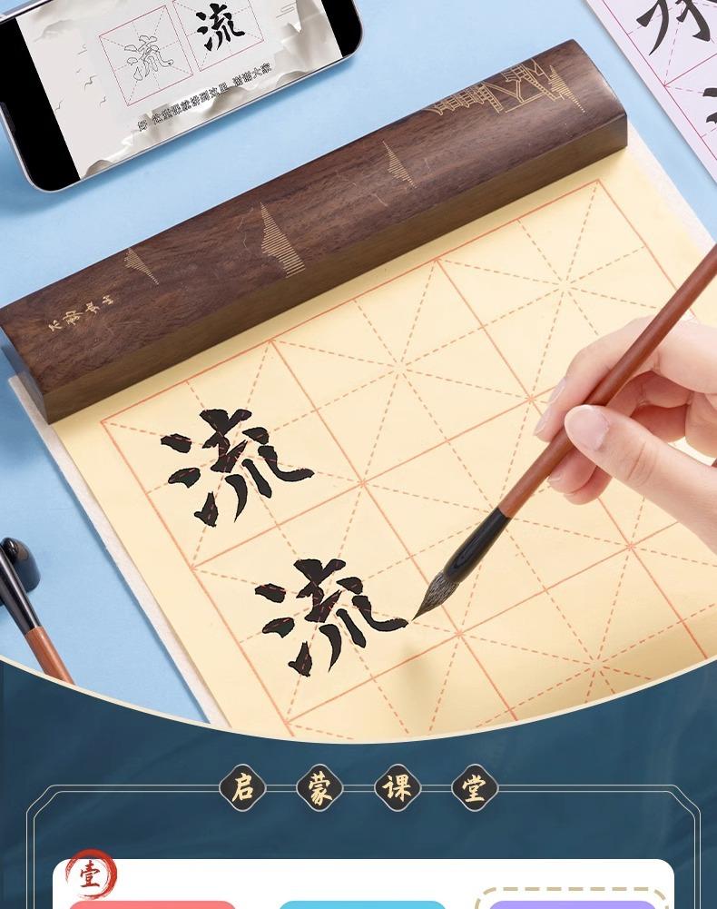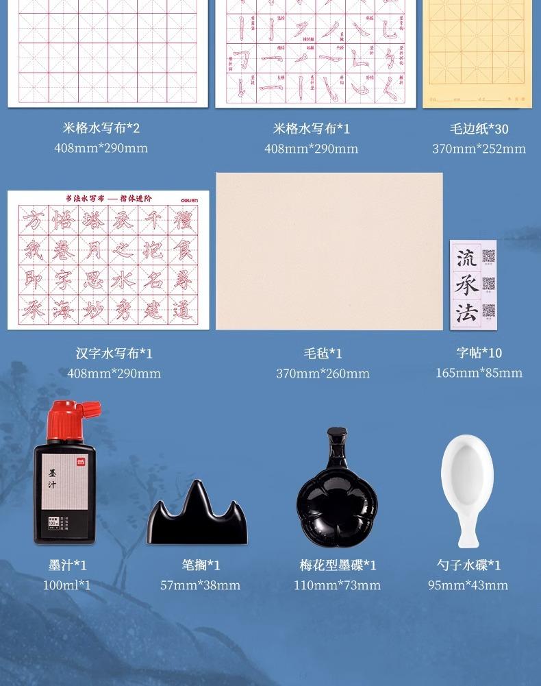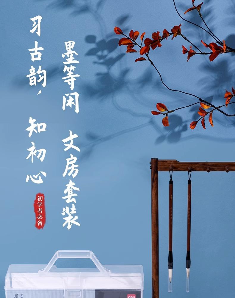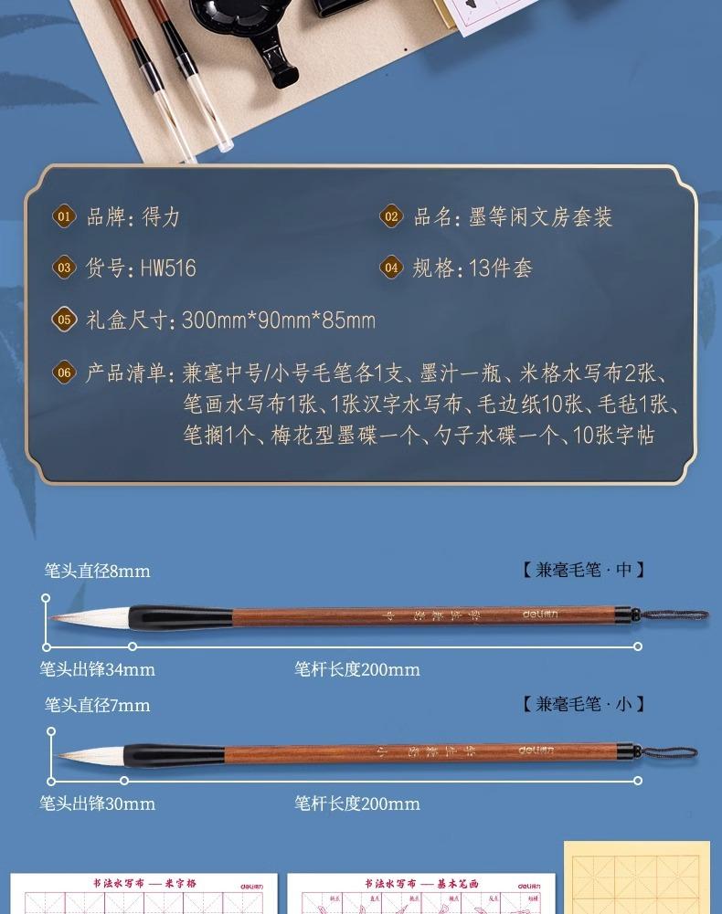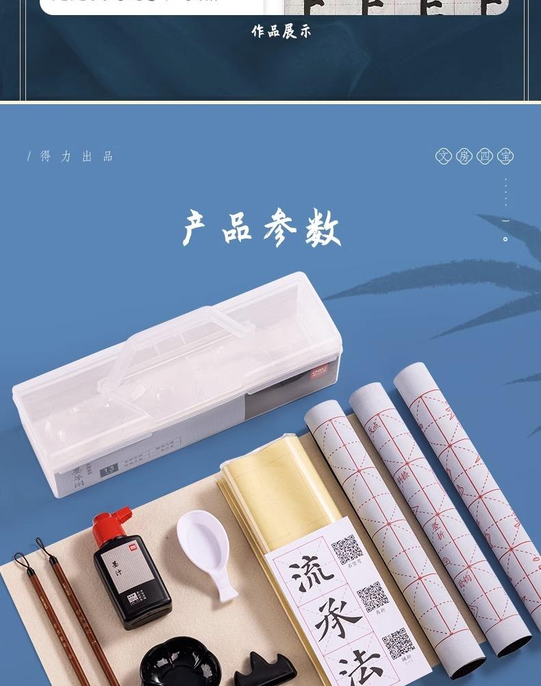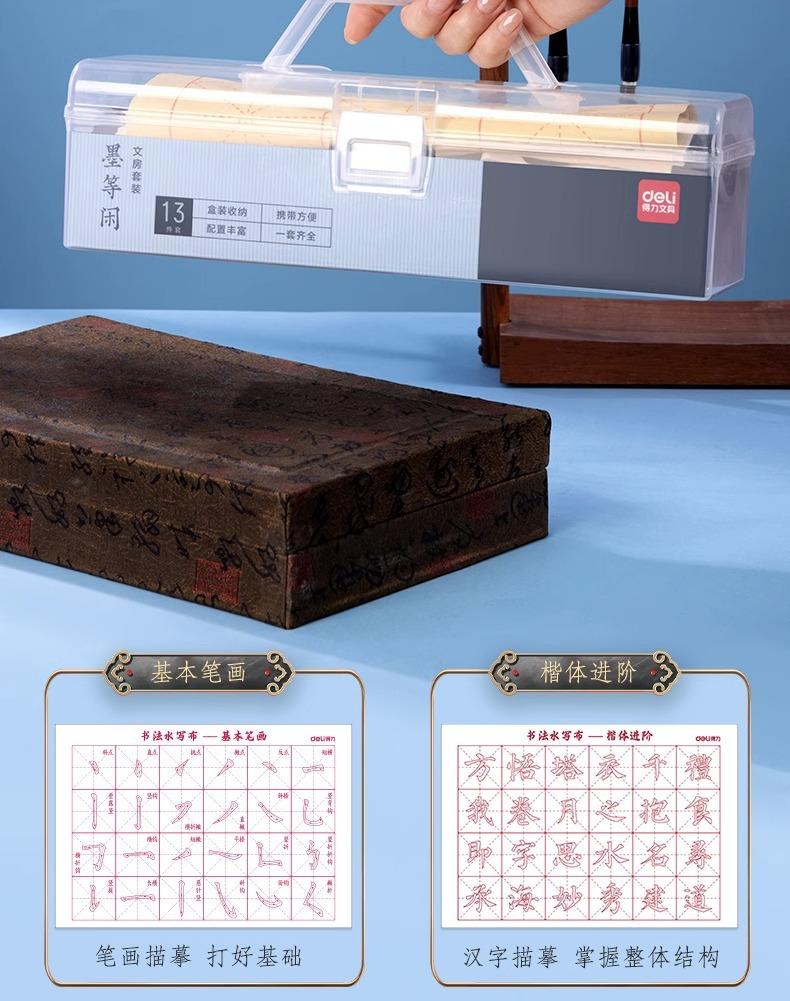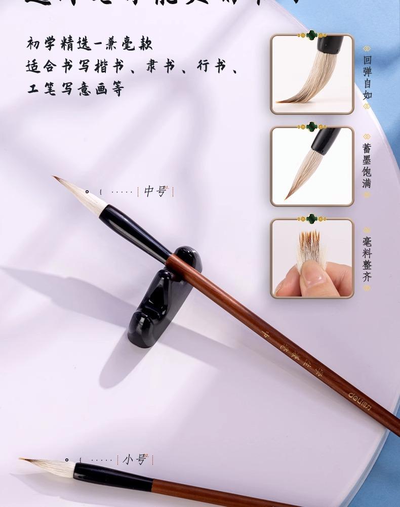 Pincel de escritura Deli para principiantes, juego de estudio, cuatro tesoros, pluma dura, caligrafía, práctica de caligrafía, pincel de escritura para caligrafía de nivel inicial