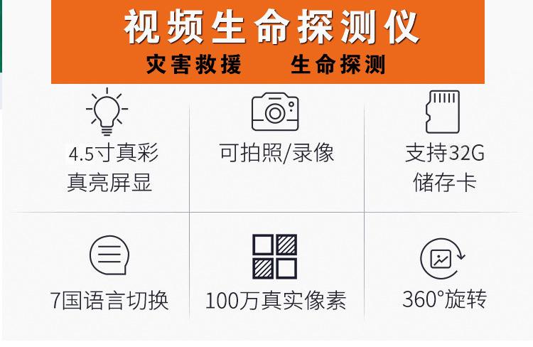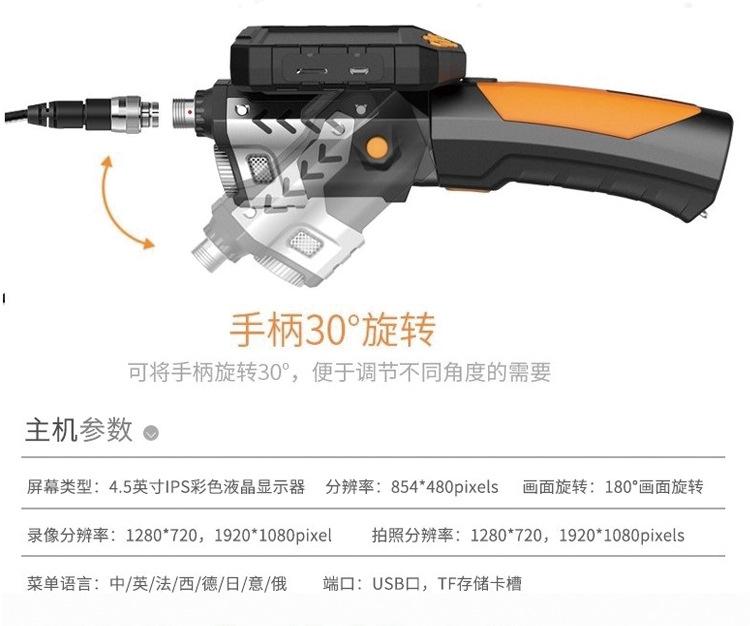 Parámetros del detector de vida de voz y video bidireccionalCámara: 1080P HD Sony CMOS Fuente de luz: 12 LED mejorados (se pueden personalizar 10 luces IR) Iluminación: 0001Lux/F1.2 Lente: 3.6mm F1.2 (H )120 Distancia focal: 20-100 cm Estilo de cámara: Separación integrada y articulada de dos enlaces Nivel de impermeabilidad: Integrado de enlace: nivel de impermeabilidad IP68/separación articulada: IP67 Audio y micrófono: -48dB, altavoz 1w, 300m³ (excepto HD80, HD80L) Longitud/peso del poste telescópico: LD500C mide aproximadamente 5 metros cuando está extendido, 1.19 metros y pesa 1.3 kg cuando está retraído Número de secciones del poste telescópico: LD500C: 5 secciones Tamaño de la pantalla: Pantalla LCDIPS omnidireccional de 7 pulgadas