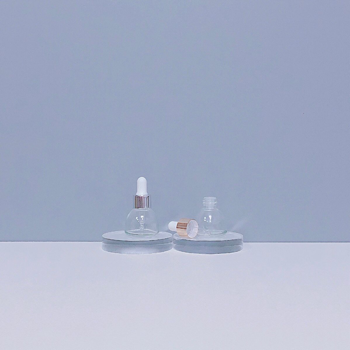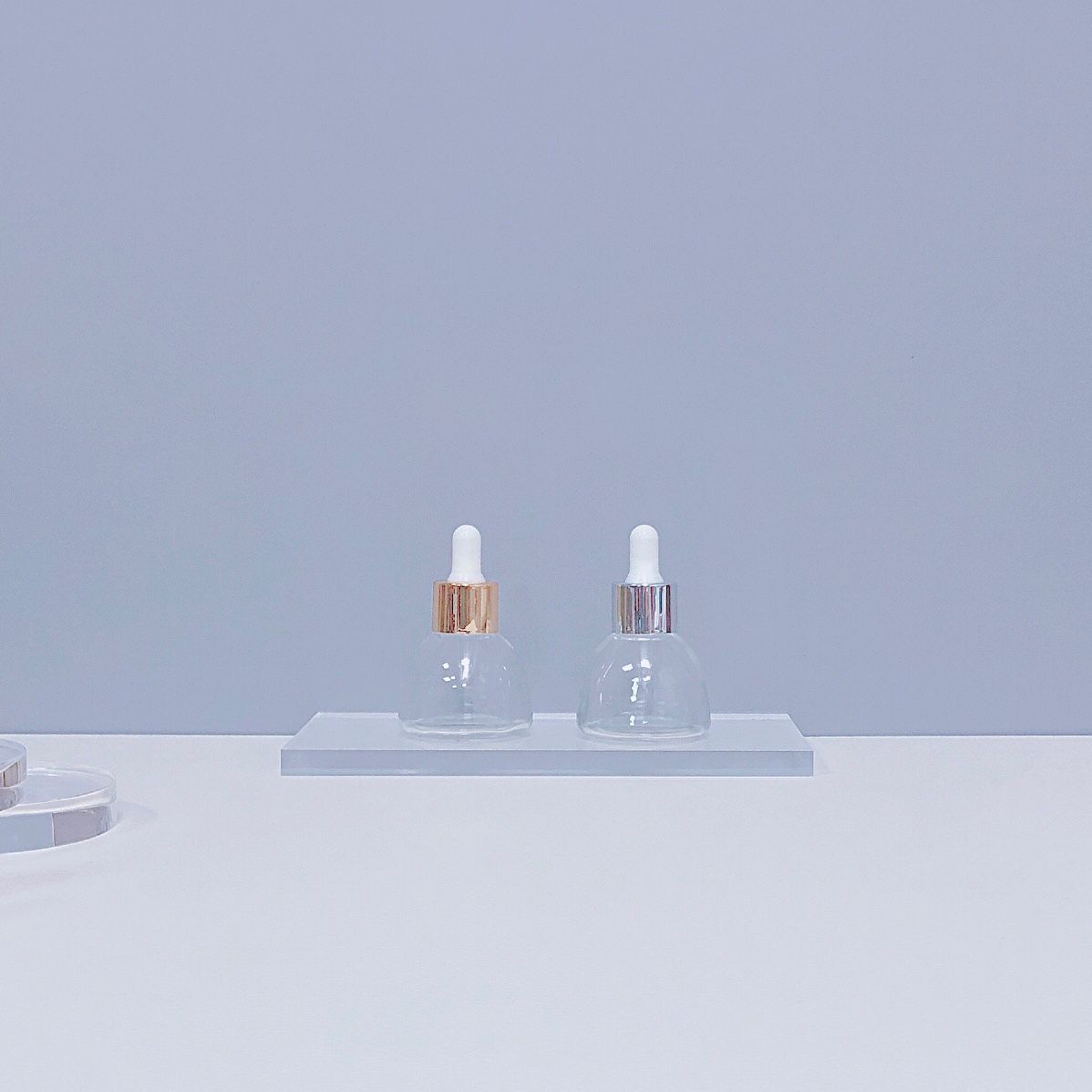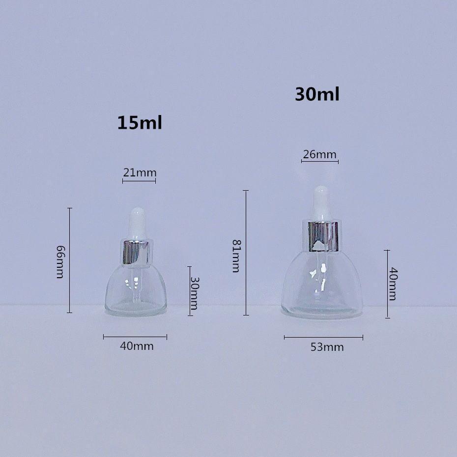 En stock, botella de esencia de vidrio transparente para cosméticos, botella de aceite esencial, botella de 15 ml, 30 ml, botella con gotero de plástico.