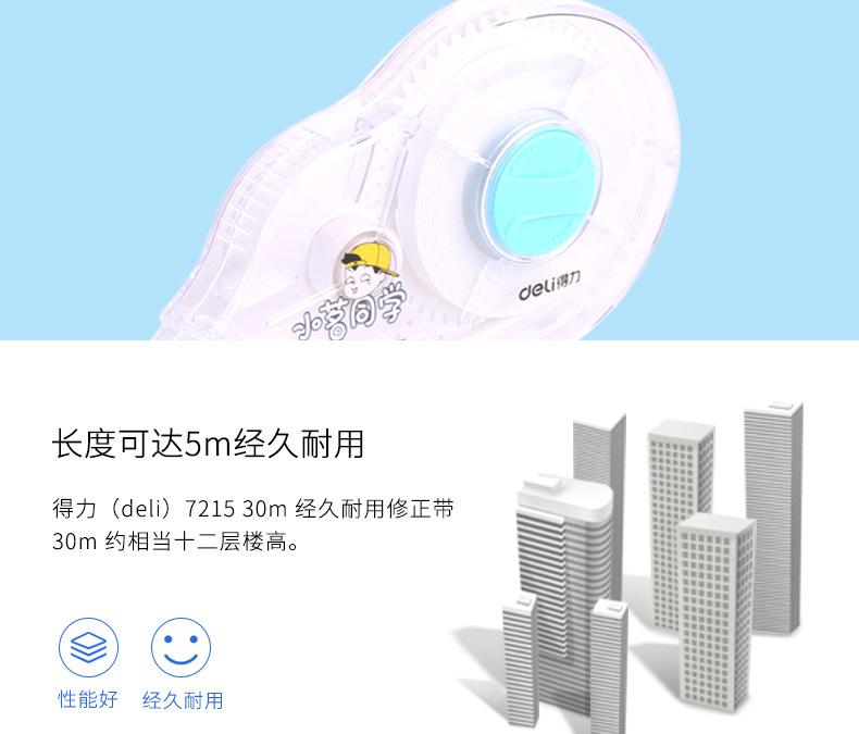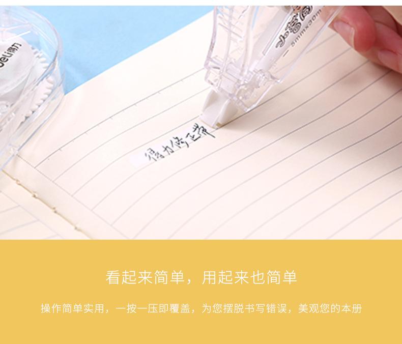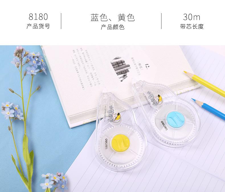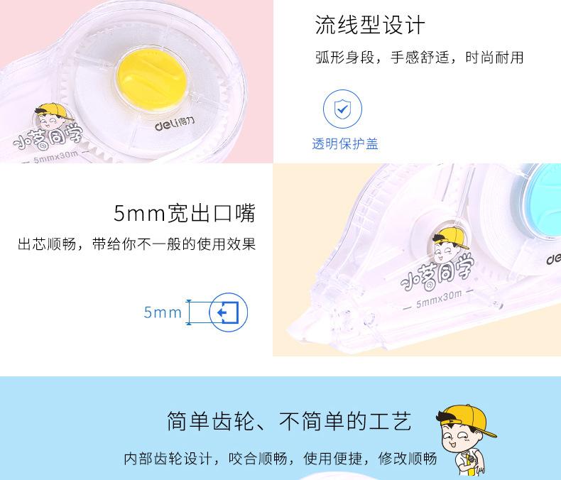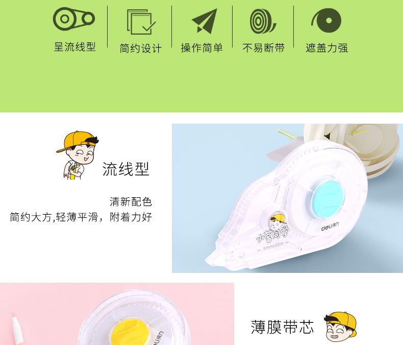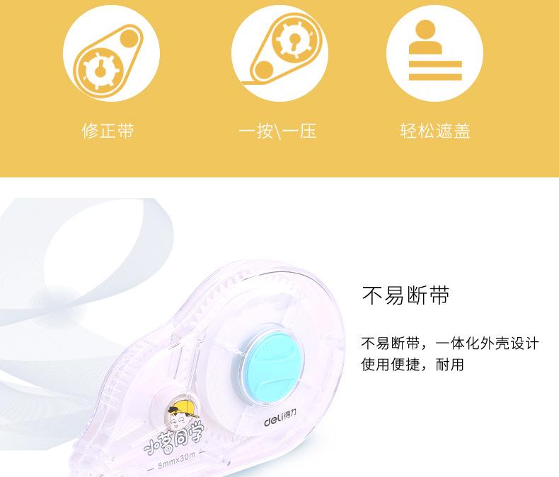 Deli 8180 Cinta correctora para estudiantes Xiao Ming cinta correctora para estudiantes 30 m gran capacidad lindo caricatura blanco cinta correctora