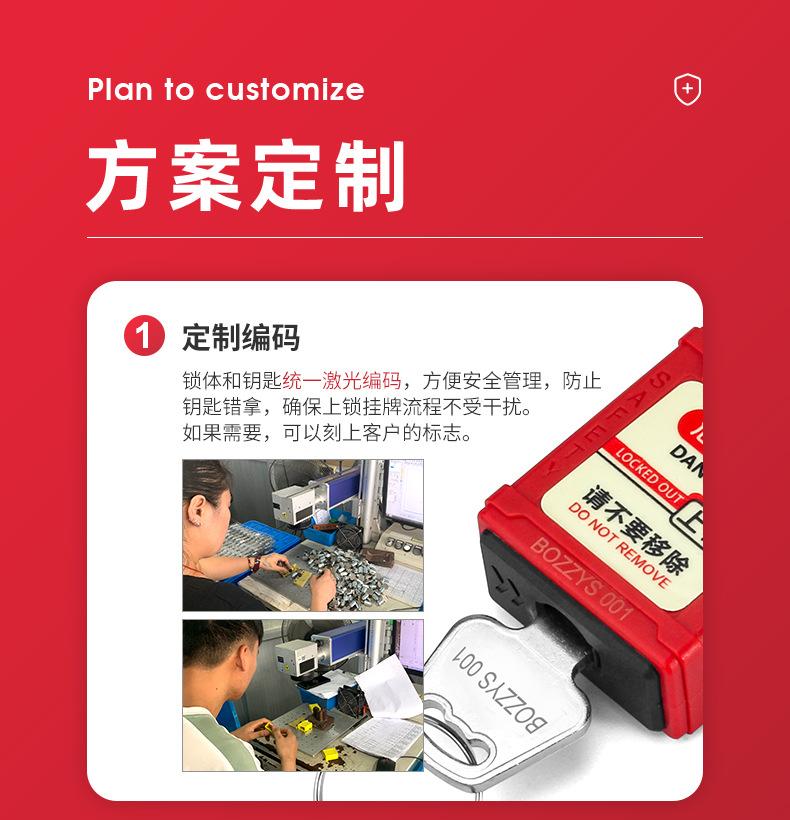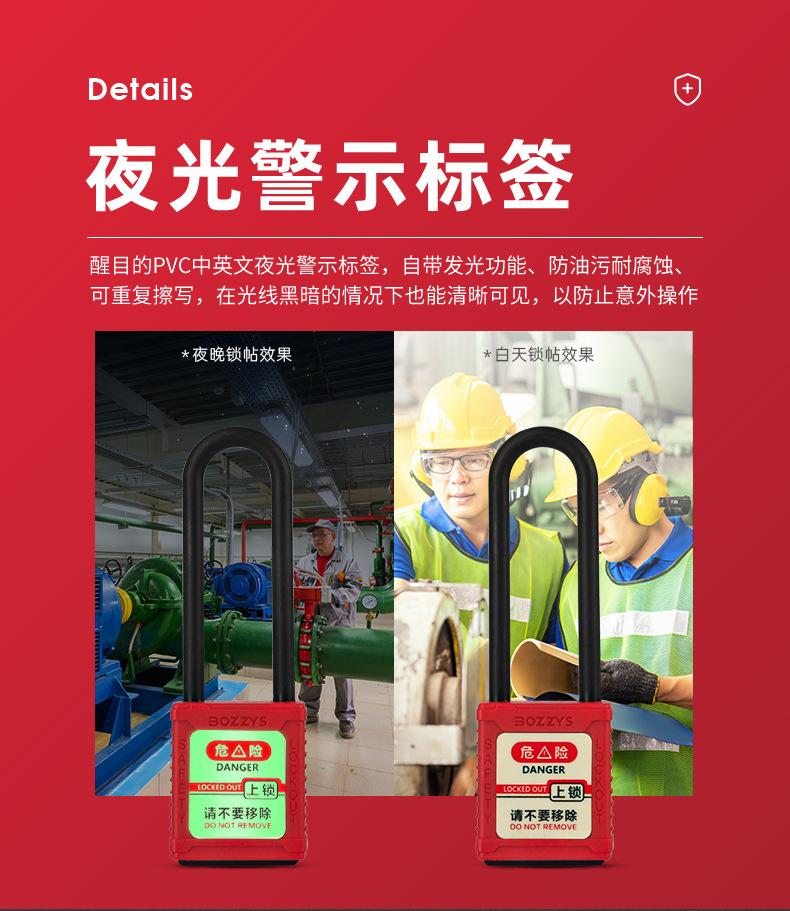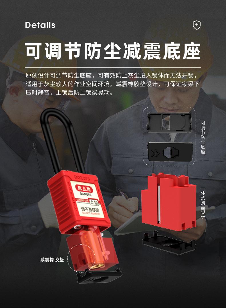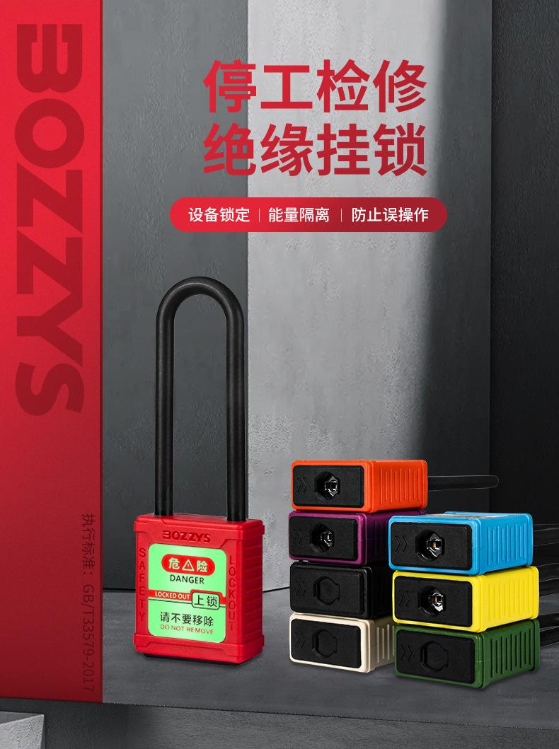 Proyecto de aislamiento energético de Bozzys para mantenimiento de energía industrial: candado aislado de plástico abierto de 76 mm de largo (personalización)