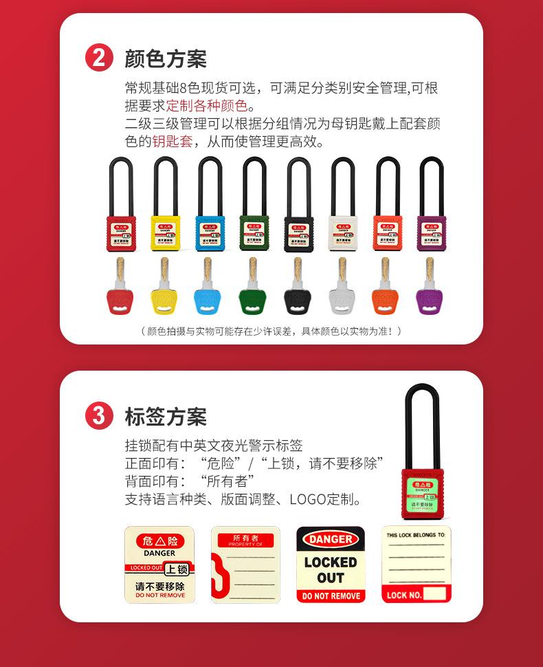 Candado de plástico con aislamiento de energía abierta con núcleo de bloqueo de cobre de 76 mm de largo, personalizado, G133T