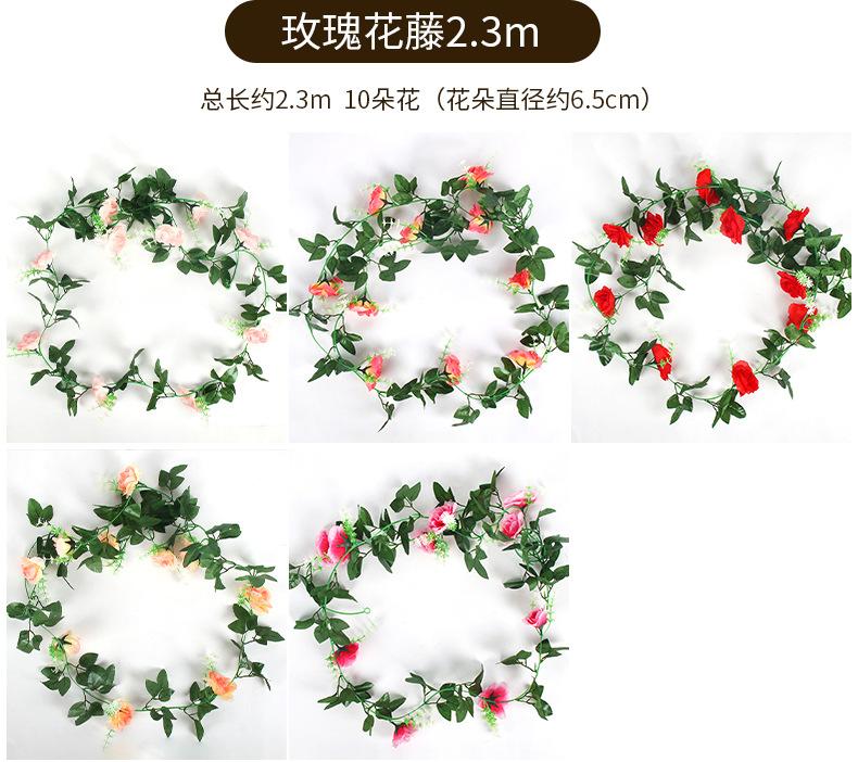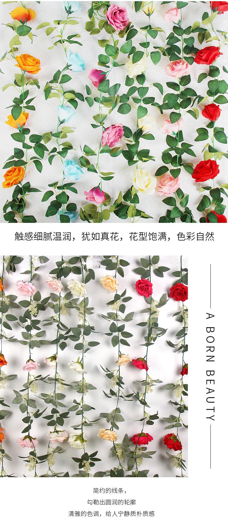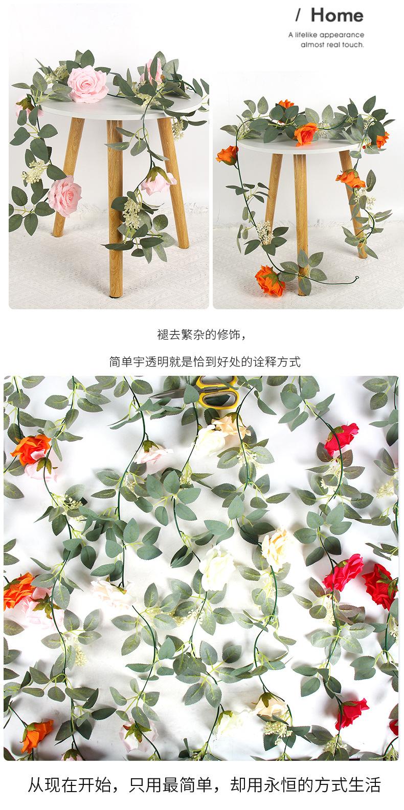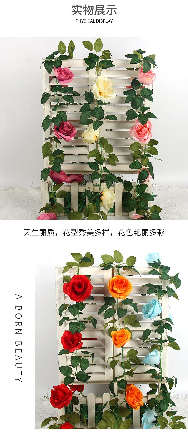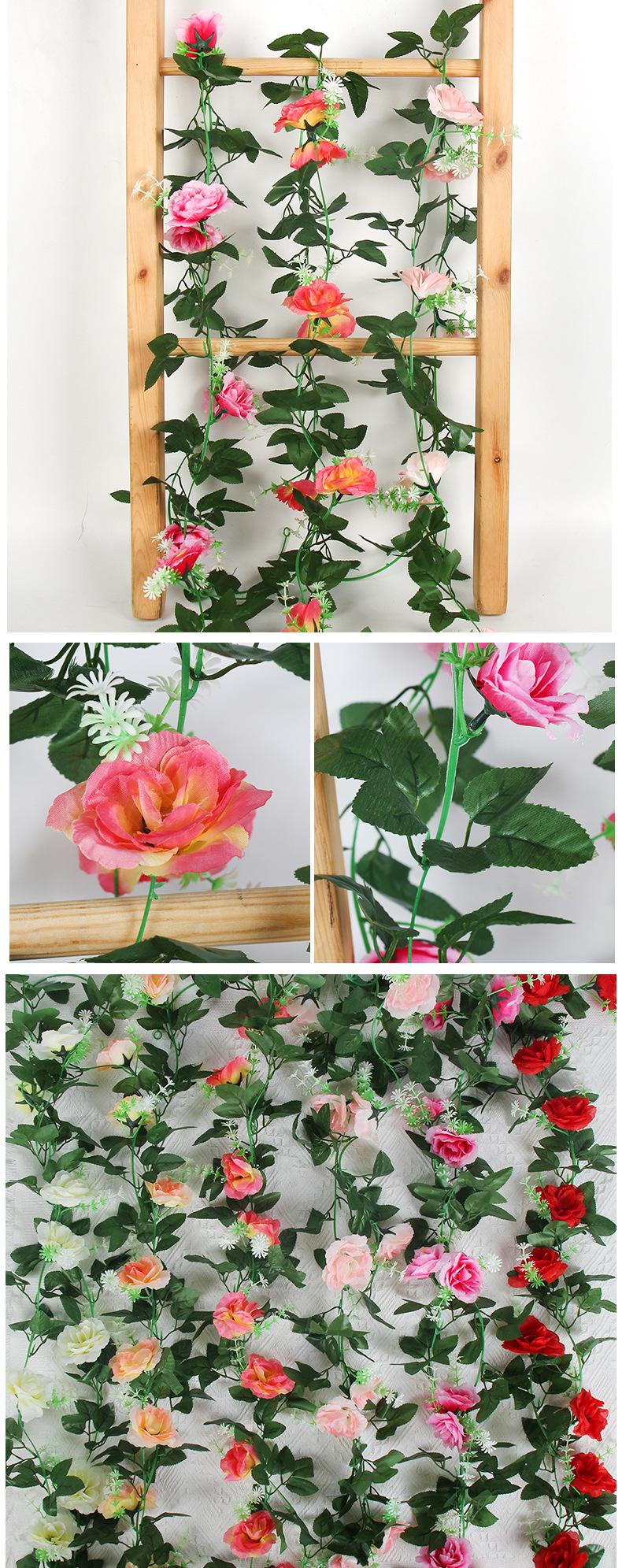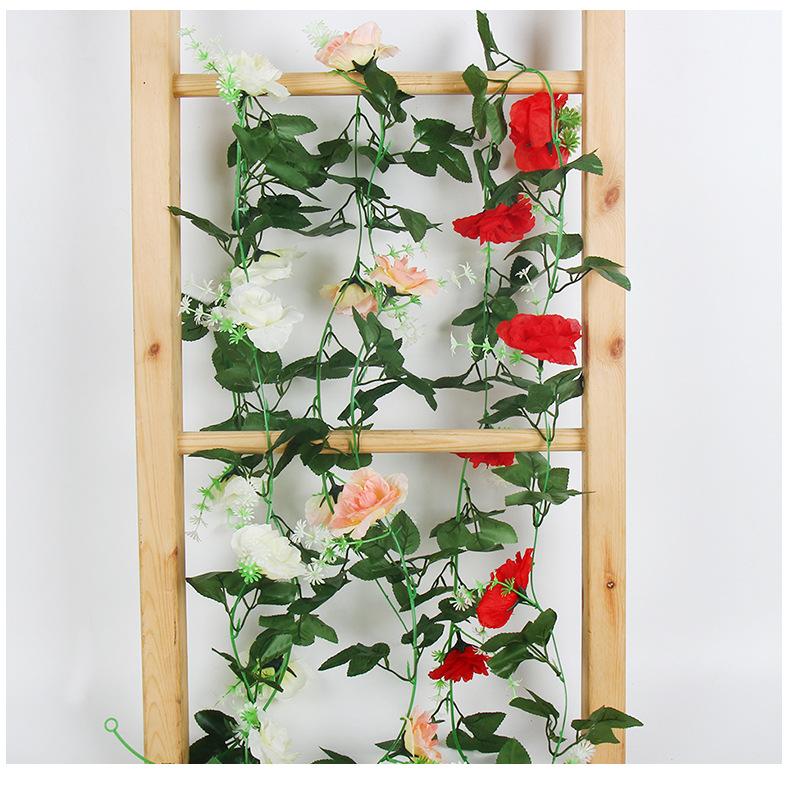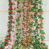 2025 Nueva Flor de Seda Simulada Vid de Rosa Decoración de Techo para Boda Rattan para Bloqueo de Tubo de Aire Acondicionado Cascada Serpentina