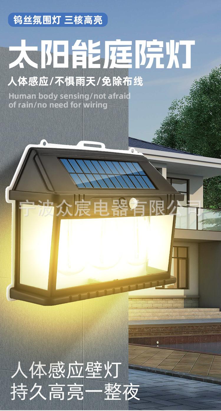Nueva Lámpara de Pared Solar para Exterior Sensor de Cuerpo Humano Tres Modos Lámpara de Pared de Tungsteno Jardín Villa Luz Nocturna Iluminación