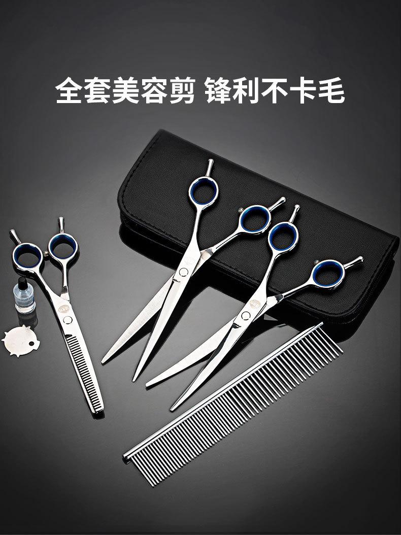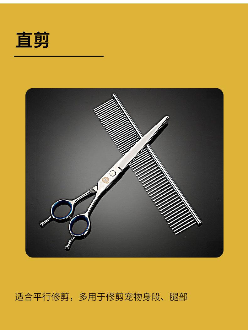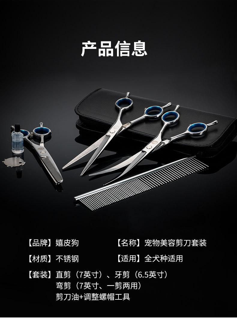 El paquete de tijeras incluye unas tijeras rectas de 7 pulgadas y unas tijeras curvas, unas tijeras dentadas de 6.5 pulgadas, una botella de aceite para tijeras, un paño de limpieza y una herramienta de ajuste de tuercas. 20 piezas por caja, 24 cajas por caja de cartón