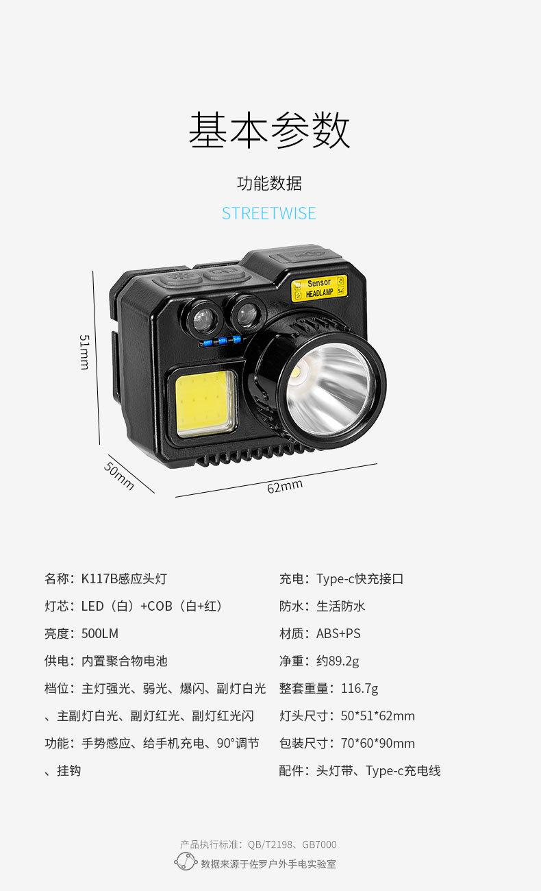 | Mini faro exterior transfronterizo con detección de gestos, semáforo de alto brillo, luz de trabajo con batería de litio recargable | |