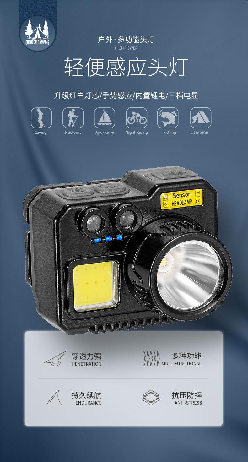| Faro delantero de luz potente transfronteriza, reflector blanco y amarillo, LED portátil para exteriores, aventura, emergencia, iluminación de trabajo montada en la cabeza. | |