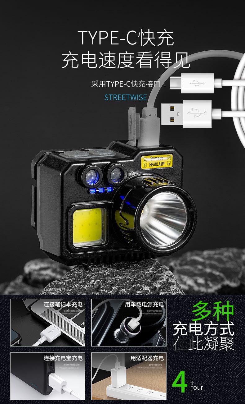 | Venta caliente transfronteriza 41 * faro COB de alto brillo, reflector montado en la cabeza, faro con pantalla de carga rápida tipo C | |