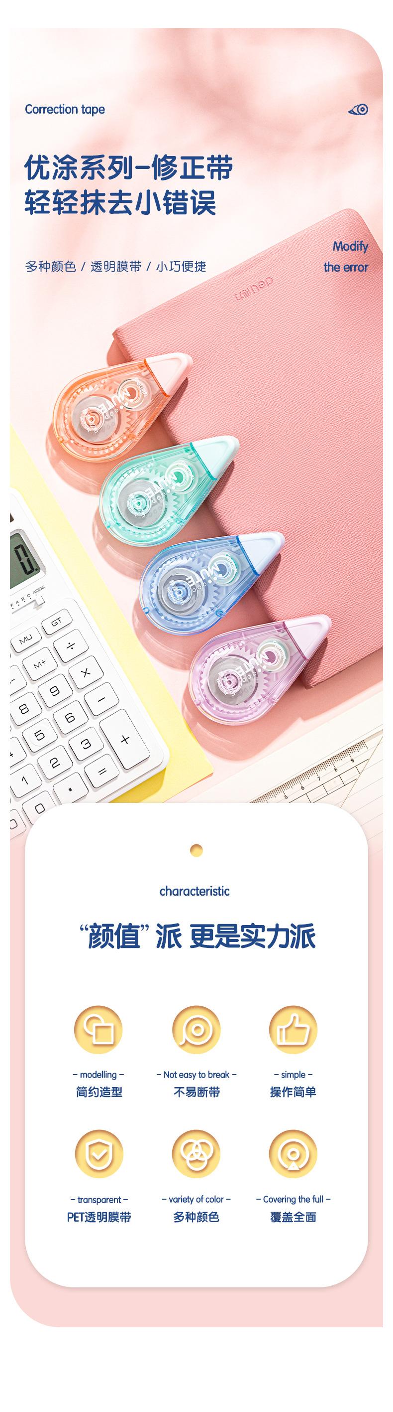 Cinta correctora Deli 71542 que usan los estudiantes, cinta correctora de gran capacidad, cinta correctora de aspecto elegante, pequeña y conveniente, cinta para cambiar palabras