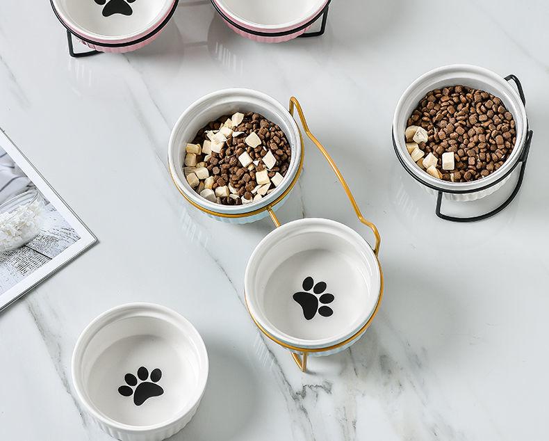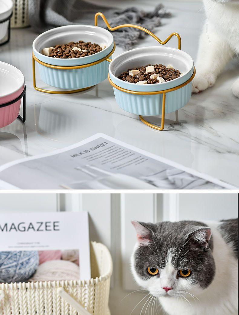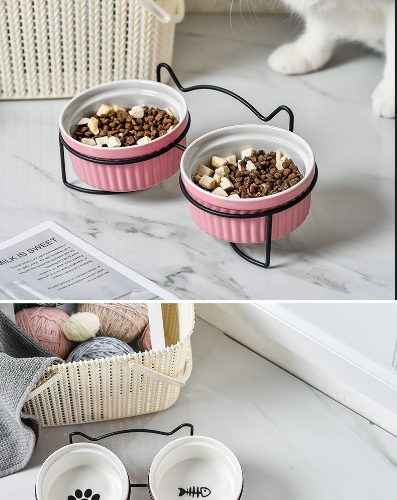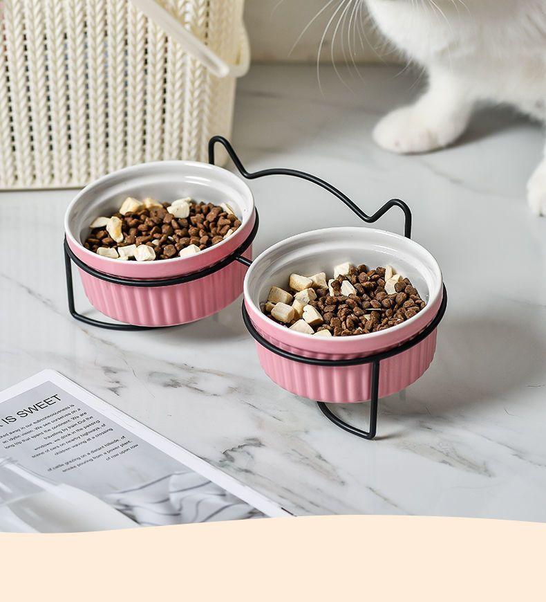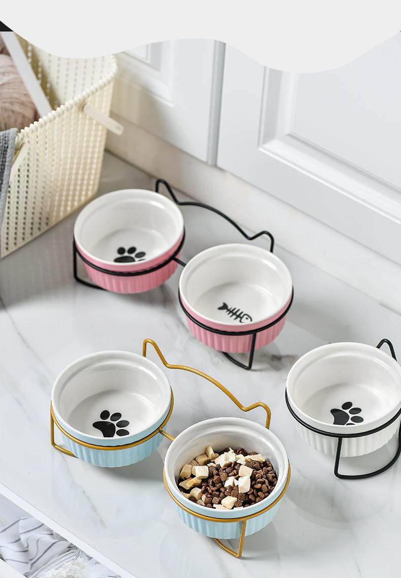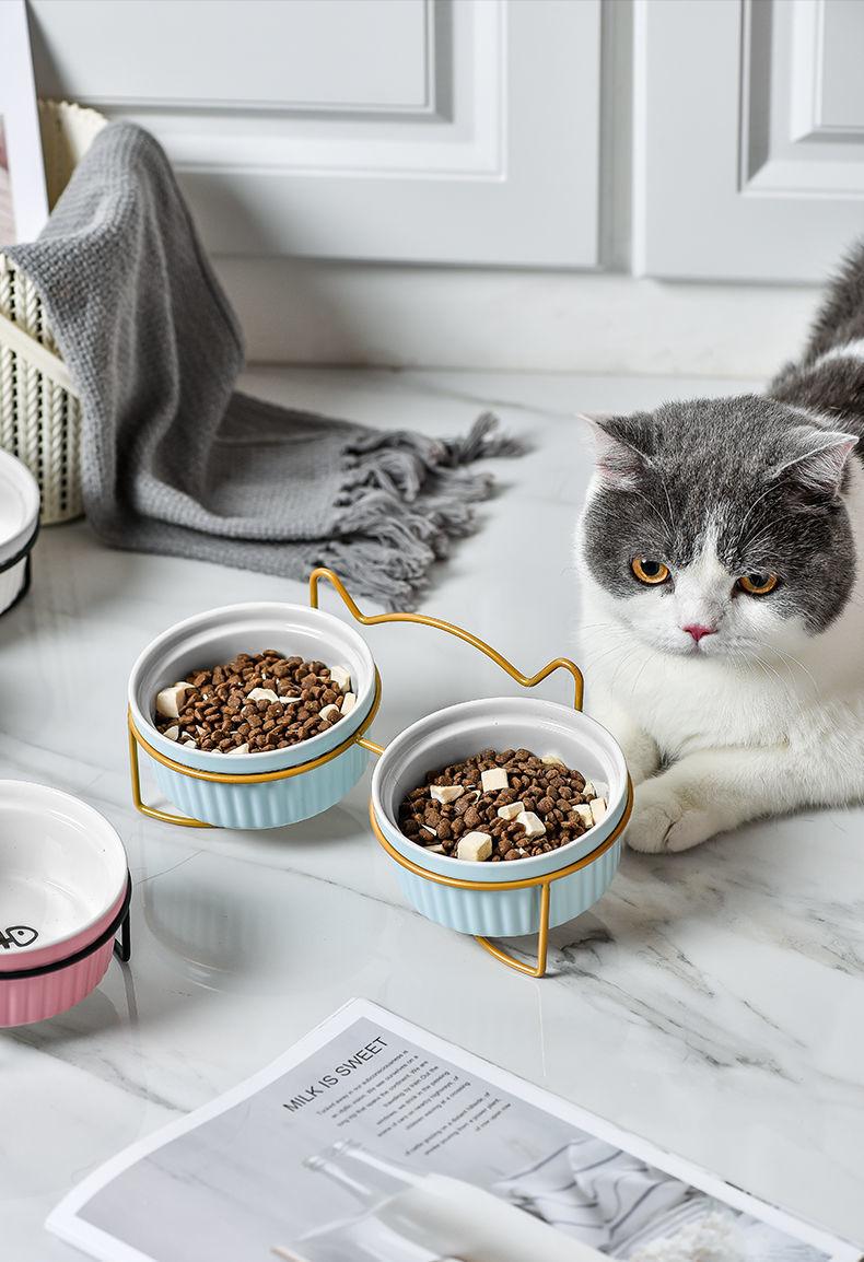 Cuenco doble de cerámica con protección para el cuello, cuenco para perros y gatos, cuenco para comida para mascotas, cuenco para perros, cuenco para comida para gatos, comedero para mascotas, suministros para mascotas