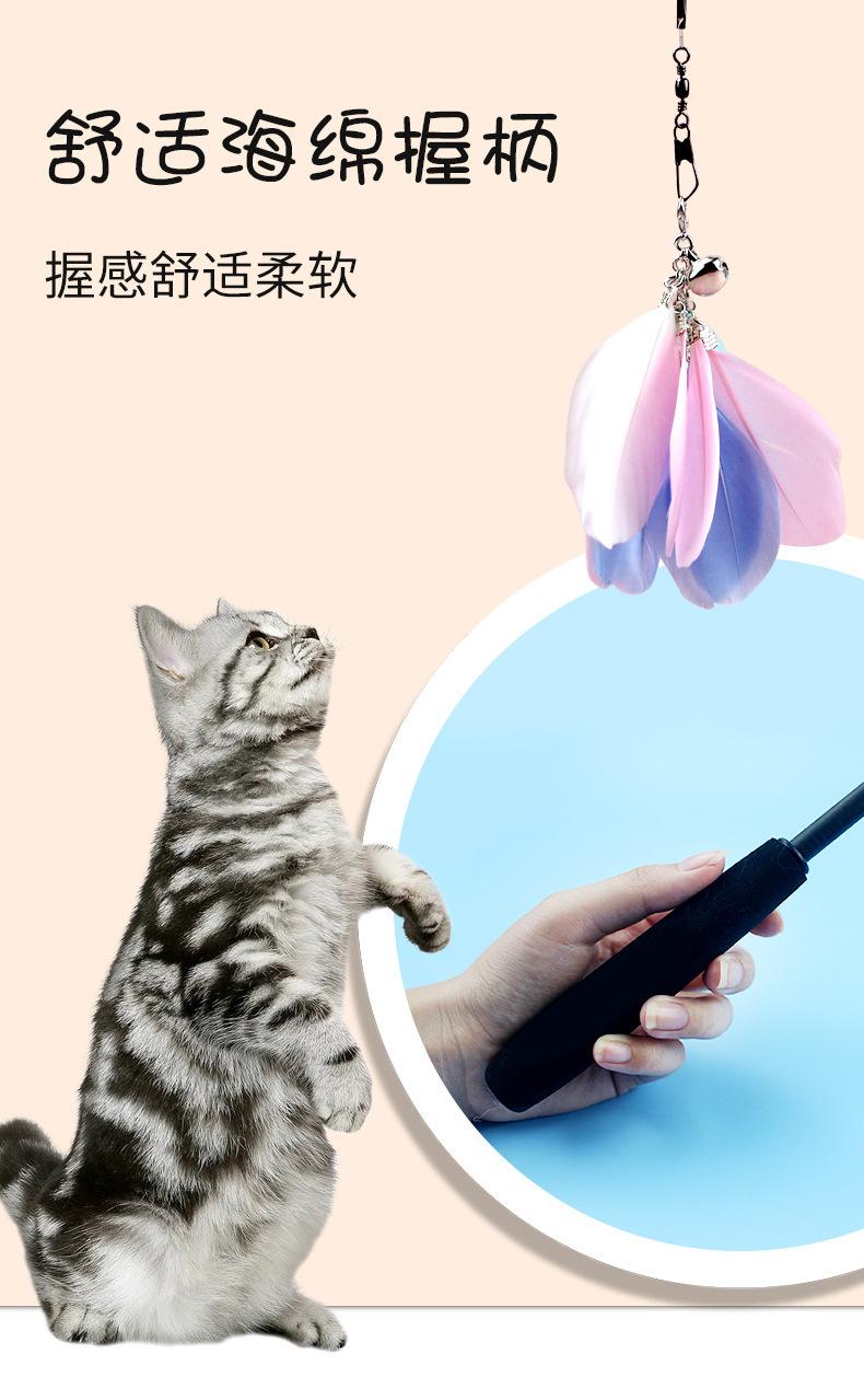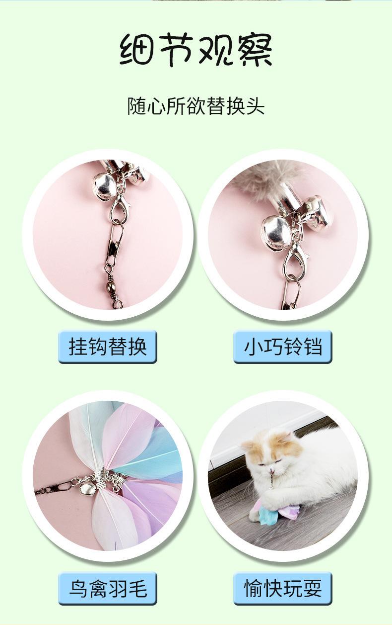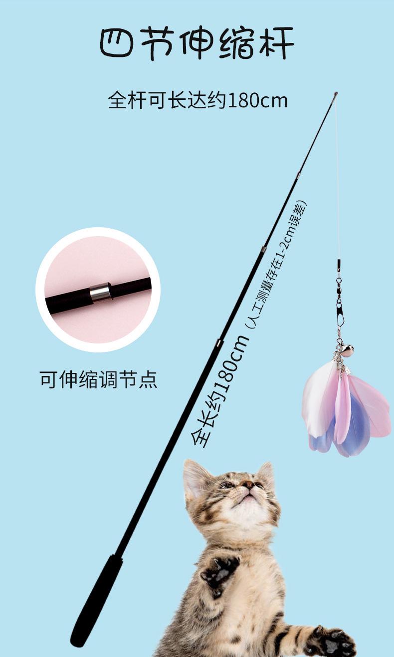 Varita retráctil divertida para gato alambre de acero pluma 1.8m super larga caña de pescar resistente a mordidas con campana juguete para gato suministros para mascotas 6