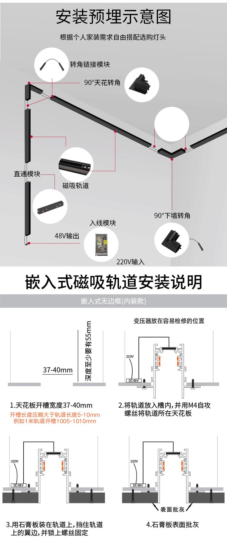 1 m open-fitting, 1 m embedded gray, 1 m concealed sealing plate, Pass-through Word Module, 100 Watt 48V Adapt...