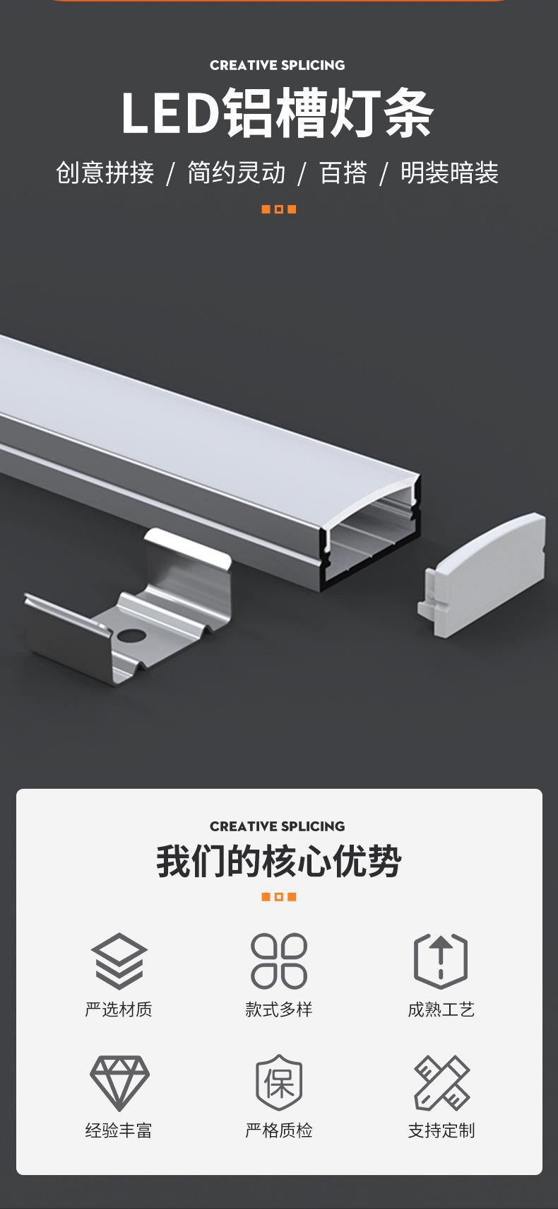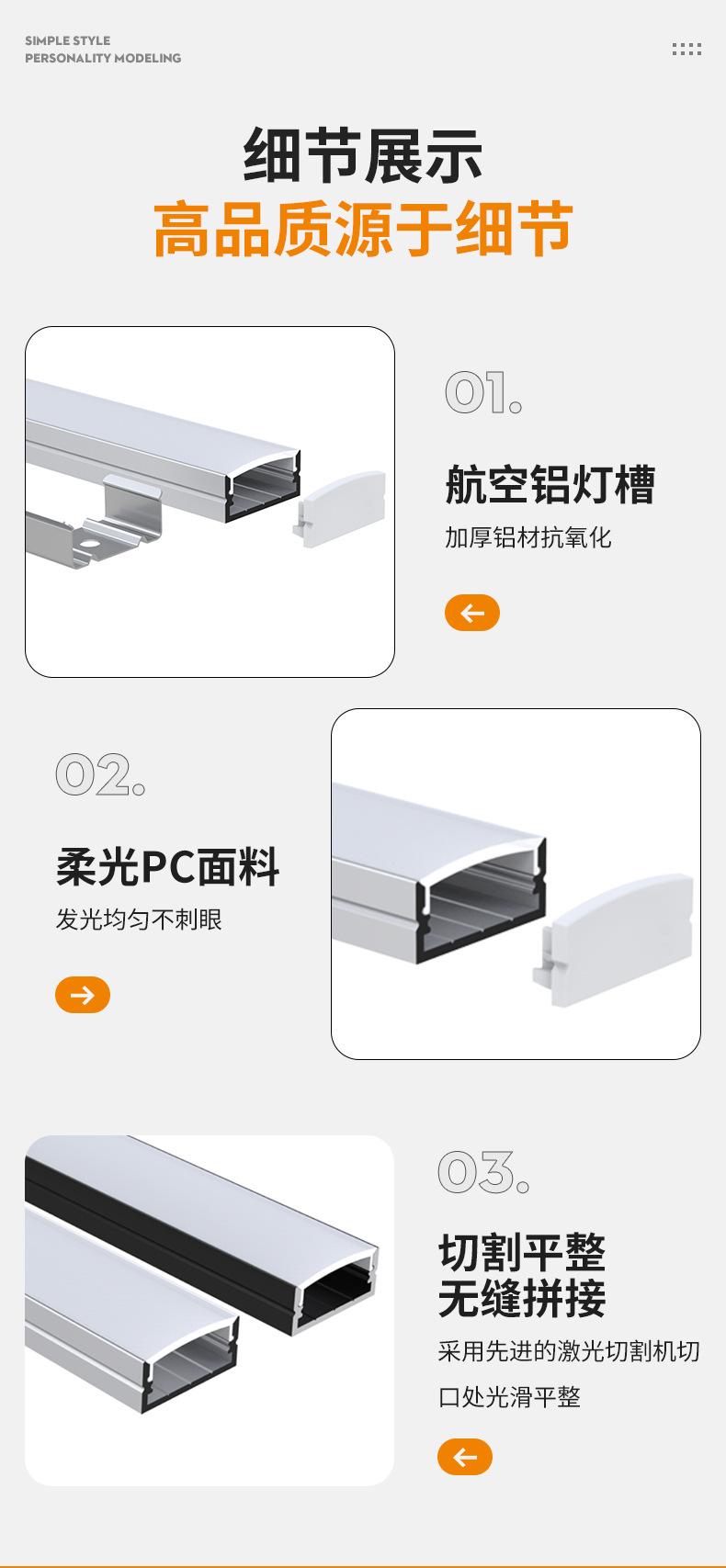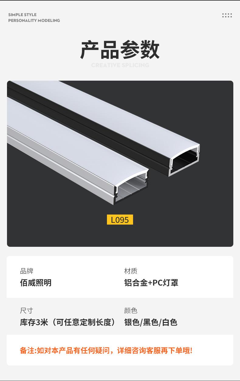 Ranura de aluminio para tira de luz LED, ranura para lámpara empotrada de techo, ranura negra en forma de U de montaje superficial, barra de luz de aleación de aluminio, tira de luz lineal