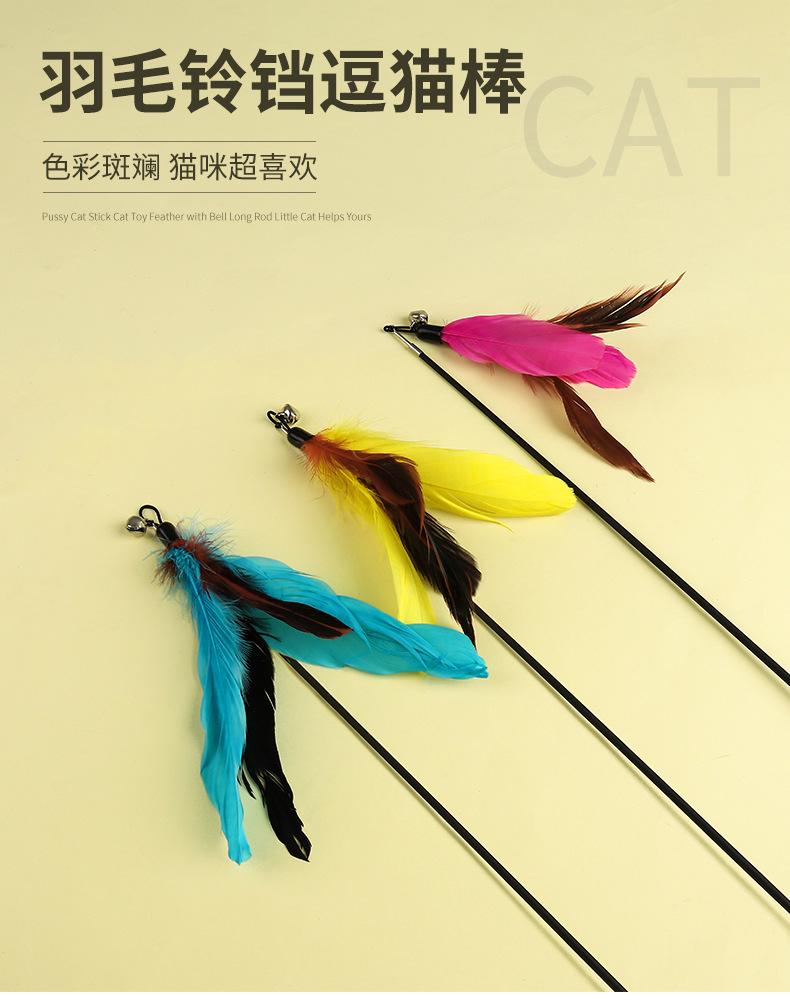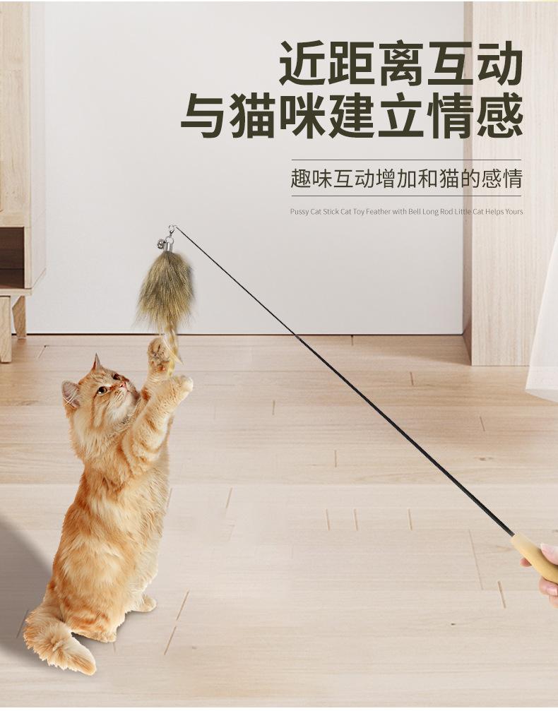 Juguete para gatos, divertido palo para gatos, venta al por mayor, campana de plumas de madera maciza retráctil, interactivo, resistente a las mordeduras, suministros para gatos, suministros para mascotas