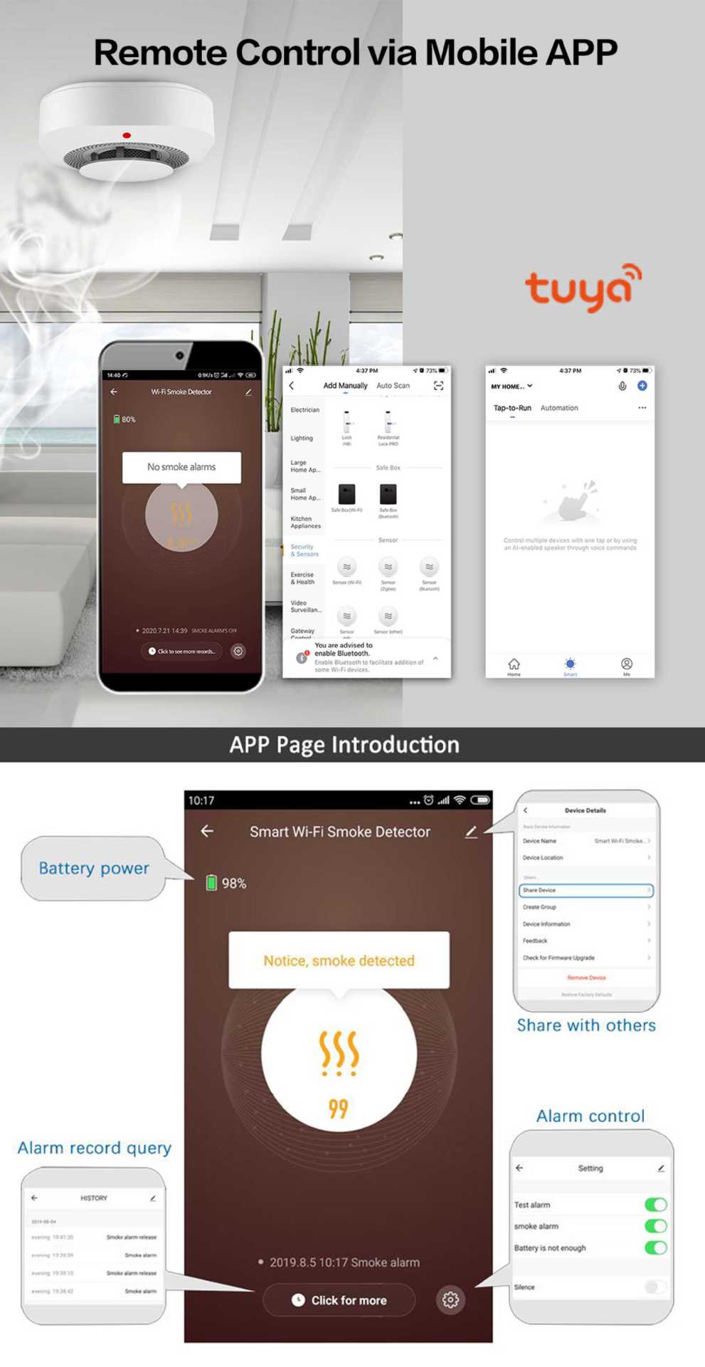 Este sensor de humo está disponible en versiones WiFi y ZIGBEE. Por favor, elija con cuidado al realizar su pedido.