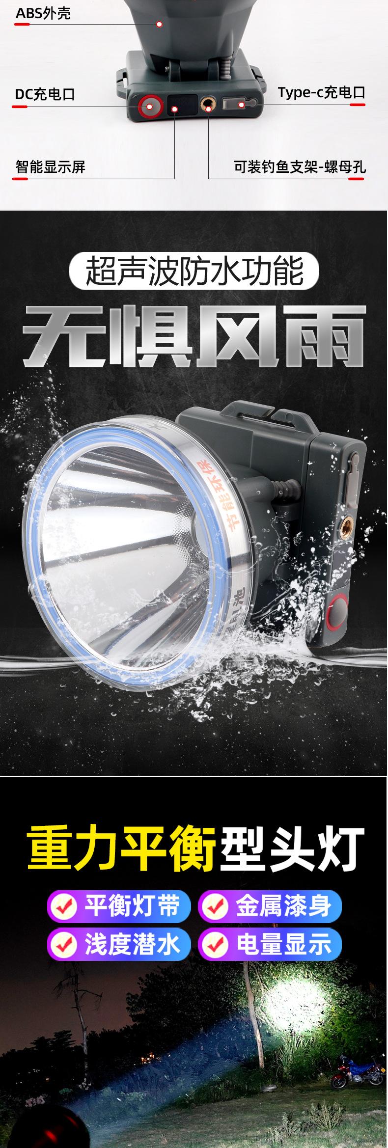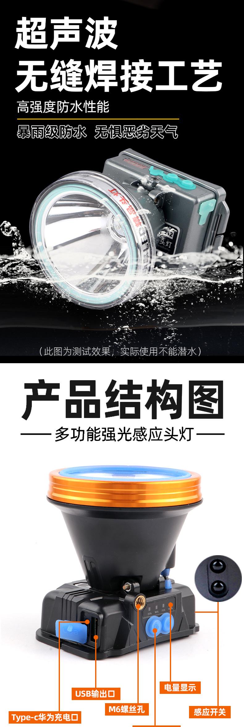 Faro LED de Luz Fuerte con Larga Duración de Batería y Alto Lumen Batería de Litio Montado en la Cabeza Recargable para Exterior Pesca Luz de Largo Alcance Venta al por Mayor