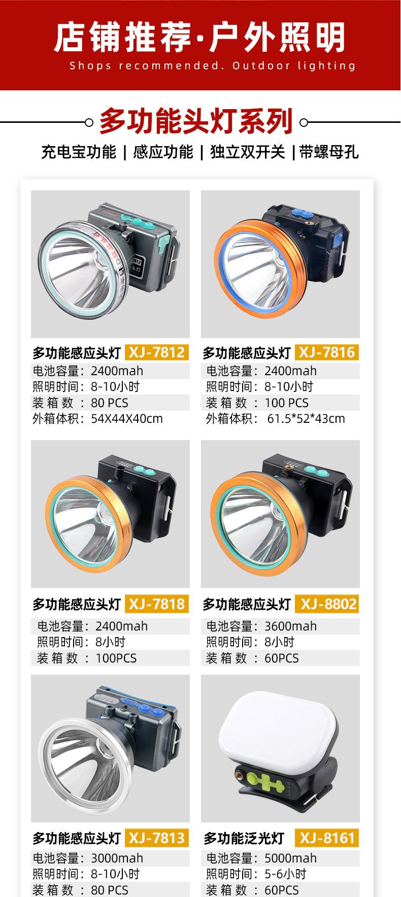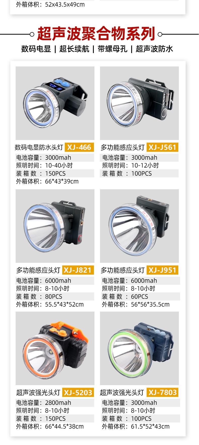 Xj-463 with charger headband, battery life 3-5 hours, Xj-461 5v charging, battery life 3-5 hours, Xj-401 three...