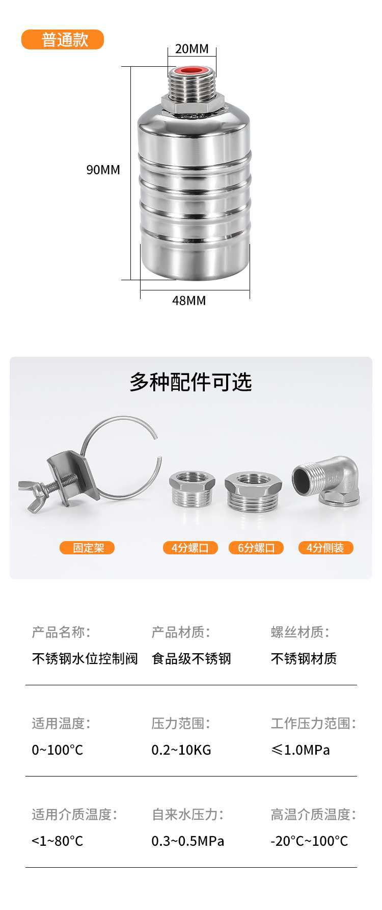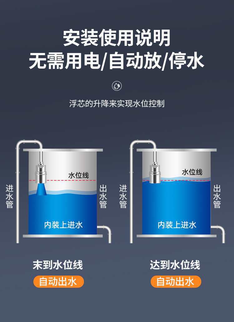 Válvula de flotador de parada automática de agua de acero inoxidable, controlador de nivel de agua, válvula de parada automática de agua para torre de agua