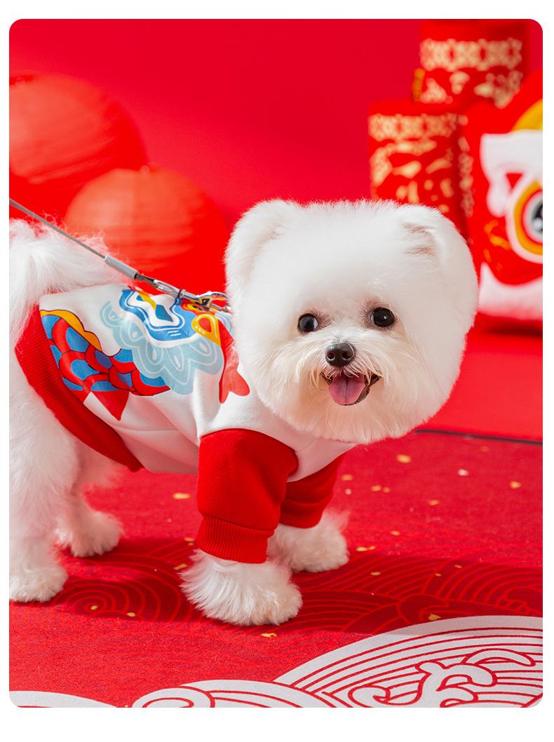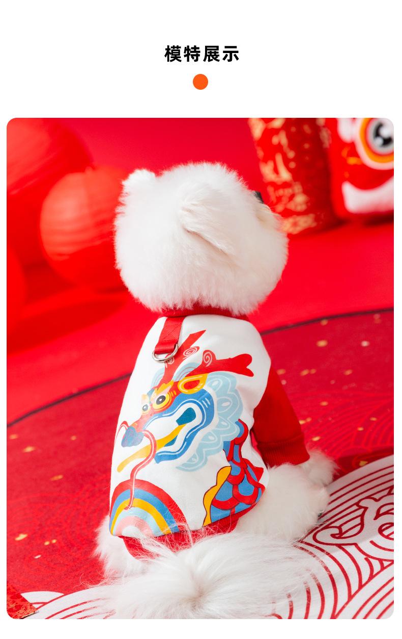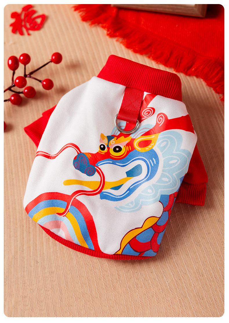 Suéter de tracción con estampado de año del Dragón, tótem de Año Nuevo para perro de otoño e invierno, ropa para perro mascota de Año Nuevo de dos patas para gato Teddy