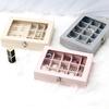 Caja de Joyería de Terciopelo Multicapa, Caja Exhibidora de Arte de Uñas con Tapa de Vidrio, Caja Pequeña para Almacenamiento de Joyería, Caja para Diamantes, Caja de Joyería
