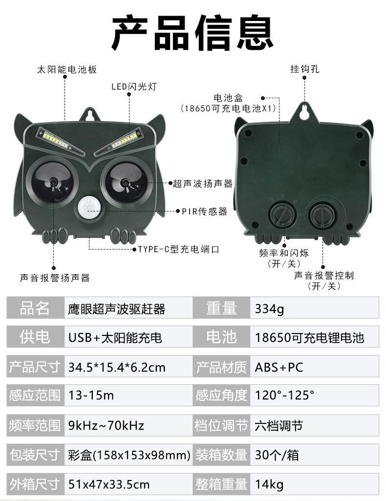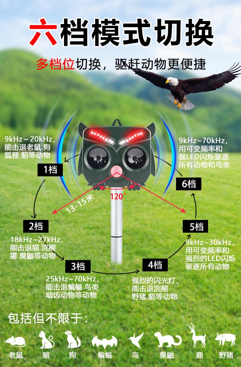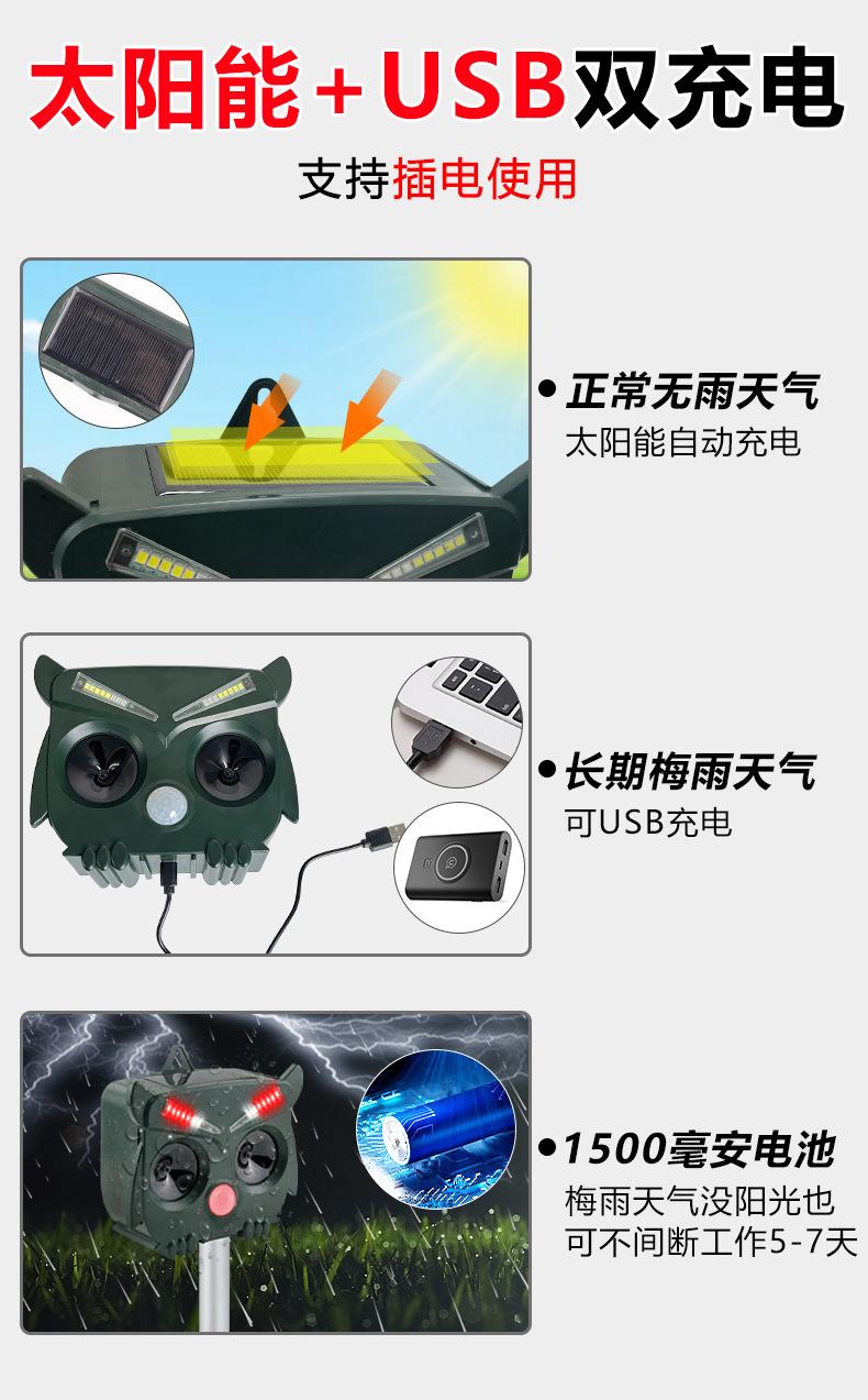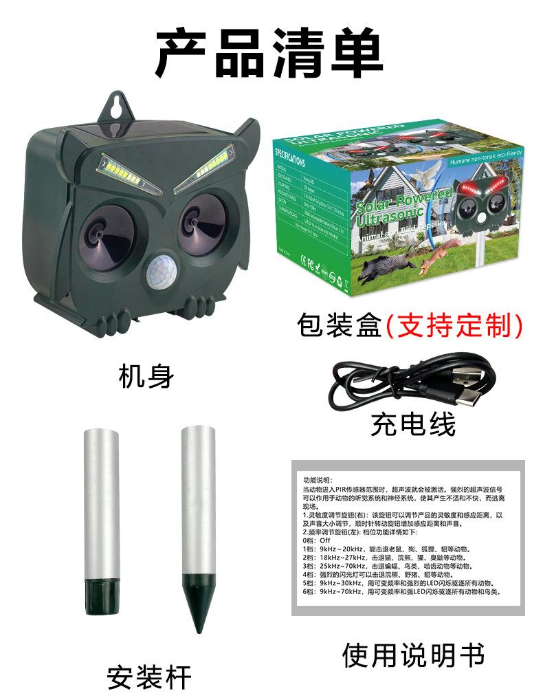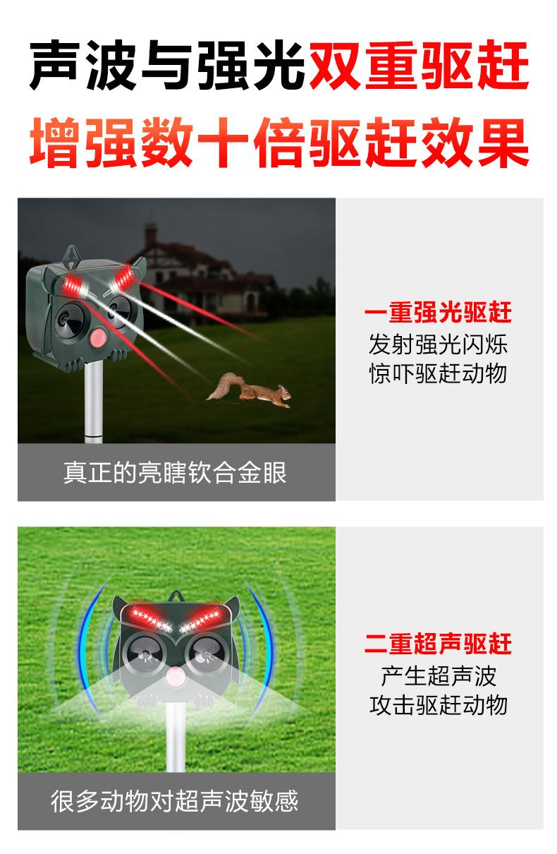 Repelente de aves ultrasónico con luz infrarroja tres en uno, solar, para exteriores, venta al por mayor transfronteriza