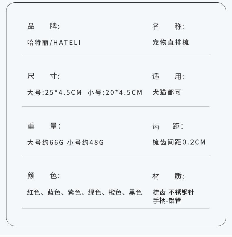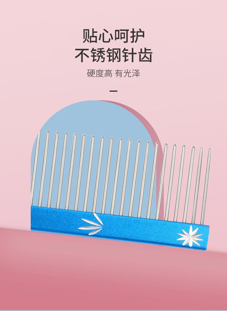 Peine de aseo para mascotas de acero inoxidable de fila recta abierta, peine para perros, peine para limpieza de mascotas, peine para pelo largo para mascotas 6