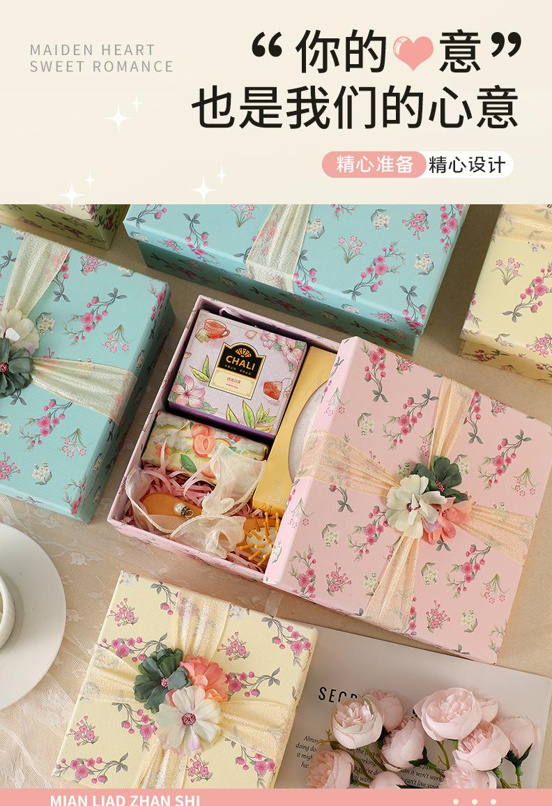 Caja de Regalo Fresca Cuadrada con Forma de Flor para Niñas, Caja de Regalo para Lápiz Labial y Cosméticos, Caja de Embalaje con Tapa y Base para Recuerdos