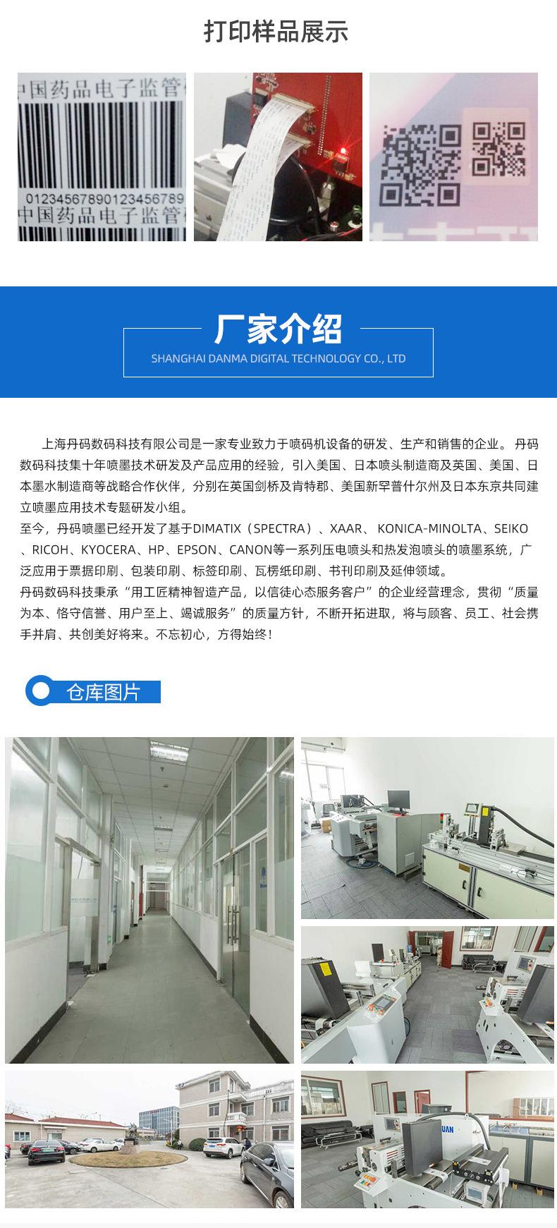 Shanghai Danma Digital Technology Co., Ltd. es una empresa especializada en la investigación, desarrollo, producción y venta de impresoras de inyección de tinta. Danma Digital Technology ha acumulado diez años de experiencia en investigación y desarrollo de tecnología de inyección de tinta y aplicación de productos. Ha introducido socios estratégicos como fabricantes de boquillas estadounidenses y japoneses y fabricantes de tinta británicos, estadounidenses y japoneses, y ha establecido equipos de investigación y desarrollo de tecnología de aplicación de inyección de tinta en Cambridge y Kent, Reino Unido, New Hampshire, EE. UU. y Tokio, Japón. Hasta ahora, Danma Inkjet ha desarrollado una serie de boquillas piezoeléctricas y boquillas de inyección térmica basadas en sistemas de inyección de tinta Dimatix (Spectra), Xaar, Konica-minolta, Seiko, Ricoh, Kyocera, HP, Epson, Canon y otros, que se utilizan ampliamente en impresión de facturas, impresión de embalajes, impresión de etiquetas, impresión de papel corrugado, impresión de libros y campos extendidos. Danma Digital Technology se adhiere a la filosofía empresarial corporativa de "utilizar el espíritu artesanal para crear productos y servir a los clientes con una mentalidad de creyente", implementa la política de calidad de "orientación a la calidad, cumplimiento de la reputación, cliente primero y servicio dedicado", y continúa avanzando. Trabajará de la mano con clientes, empleados y la sociedad para crear un futuro mejor. ¡Solo manteniendo en mente su intención original podrá alcanzar su objetivo!