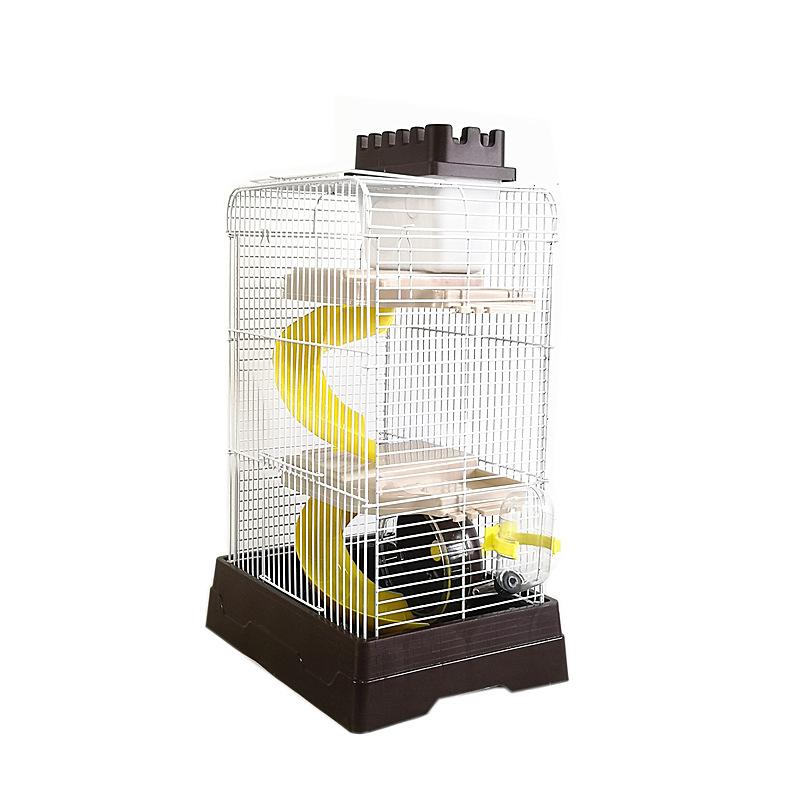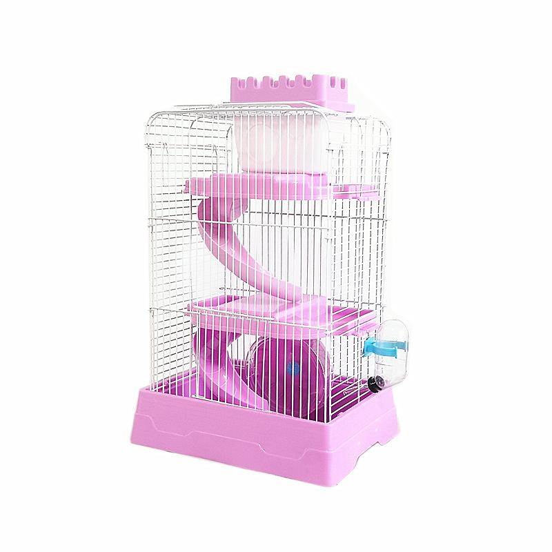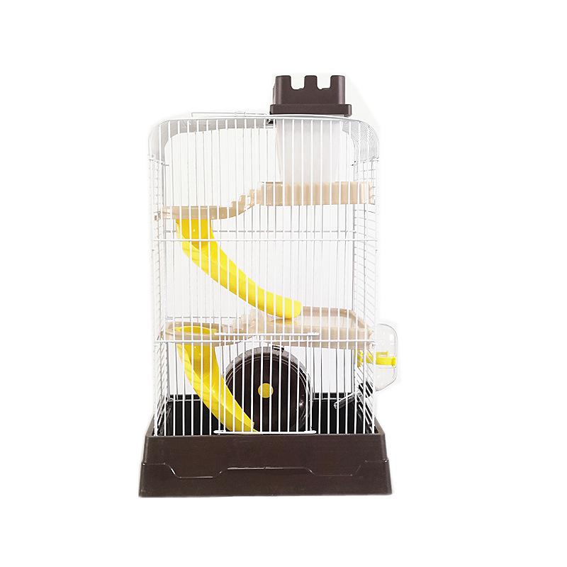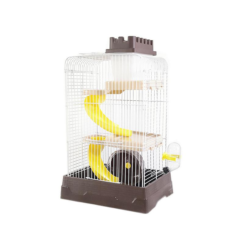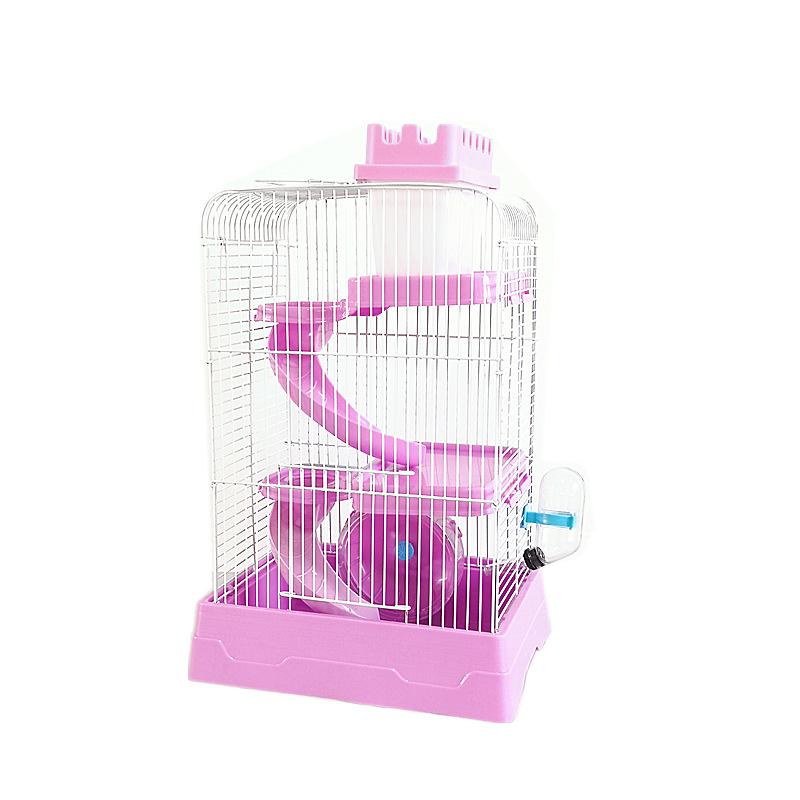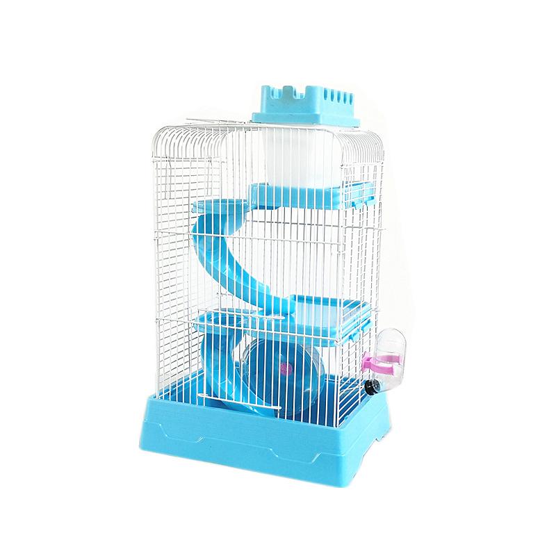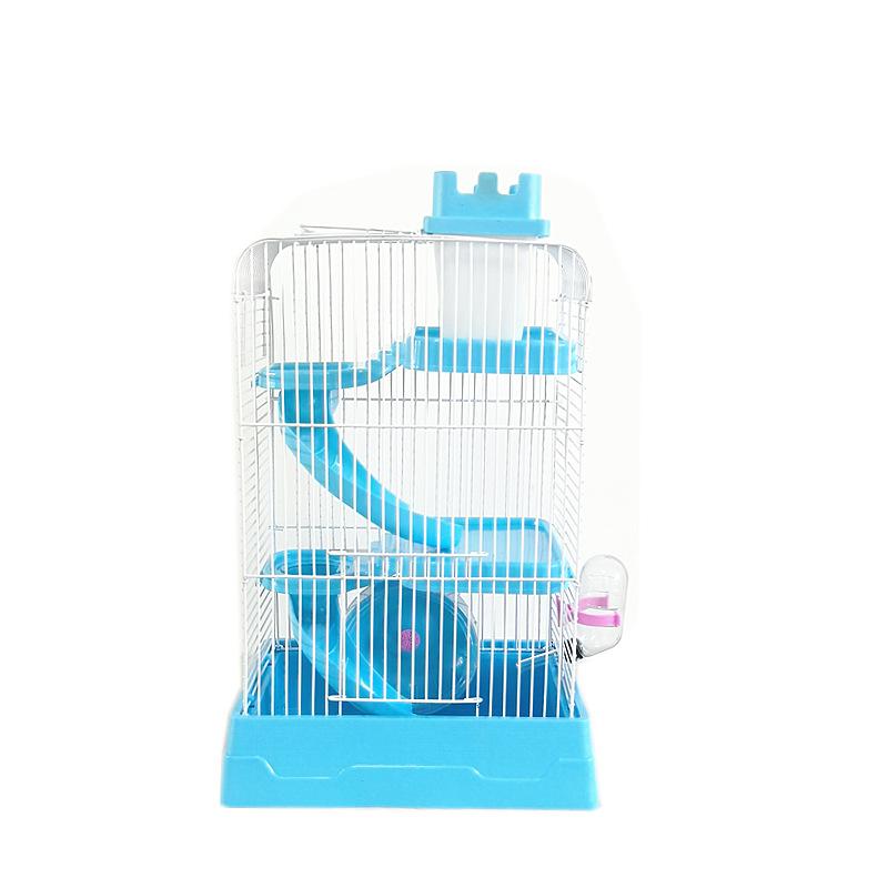 Descripción del producto: Fabricada con una caja inferior de plástico y malla de alambre, es firme y fiable. La caseta se divide en tres capas: superior, media e inferior. La capa superior es principalmente para descansar, la media para jugar y la inferior para comer, beber y jugar. Mantiene la higiene del entorno y permite que los ratones se mantengan activos.
