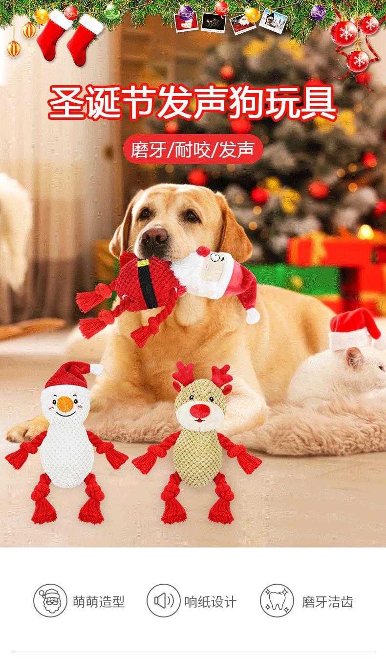 Nuevos Suministros Especiales para Mascotas Transfronterizos Serie Navideña Molar Resistente a Mordeduras Lindo Perro de Dibujos Animados Peluche Juguete Sonoro