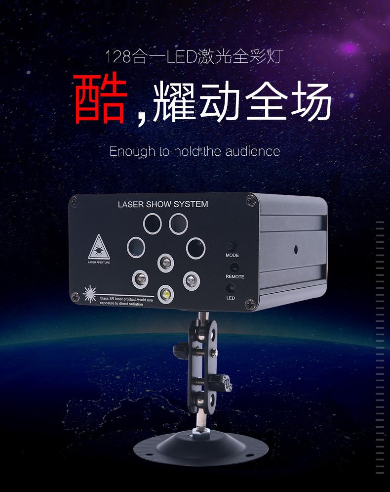 Luz láser de 8 agujeros y 128 colores, luz de patrón a todo color, luz de DJ para fiestas, luz de ambiente dedicada